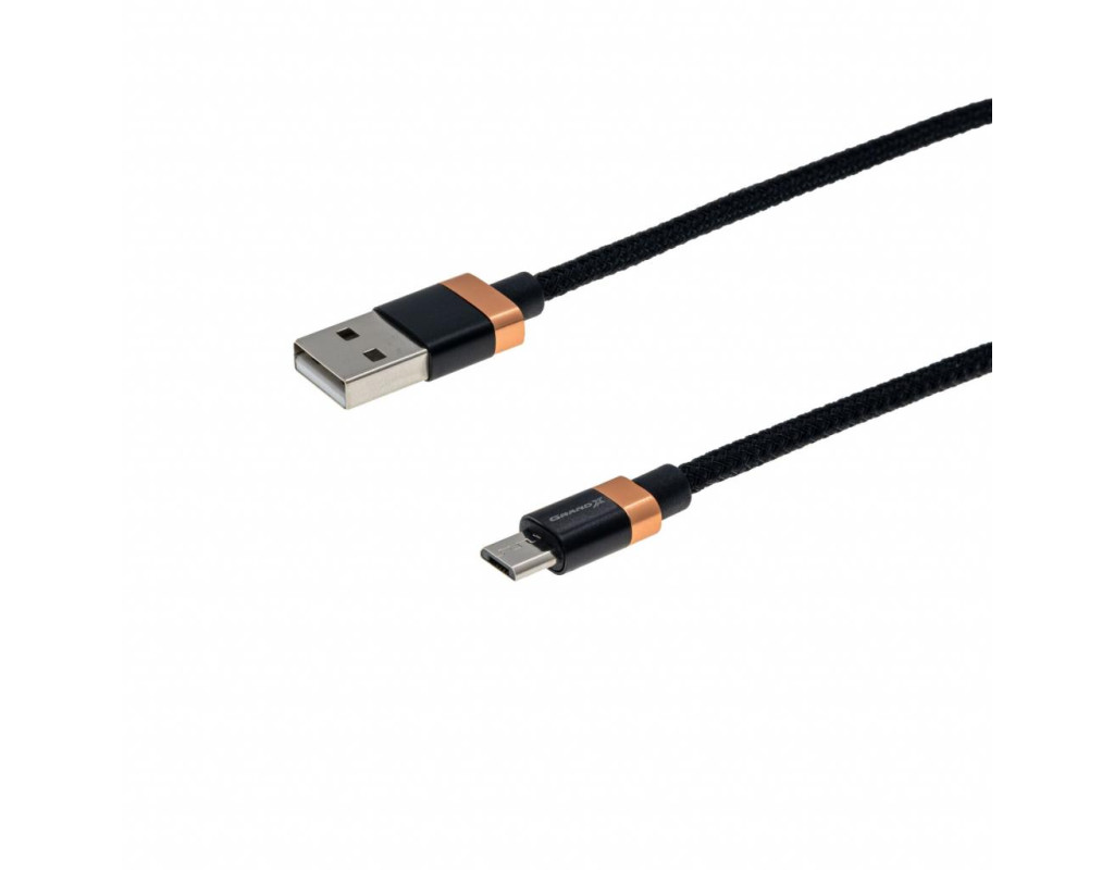 Тип - кабель, Тип конектора 1 - USB 2.0, Тип конектора 2 - micro USB, довжина - 1 м, Номінальний струм - 3 А, тканинне обплетення, Колір - чорний