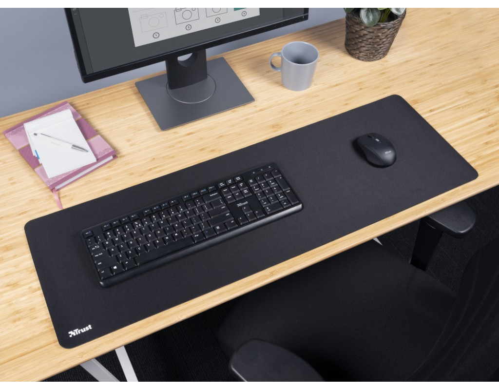 | Великий килимок для миші з оптимізованою текстурою поверхні, на якому поміститься і миша, і клавіатура. |