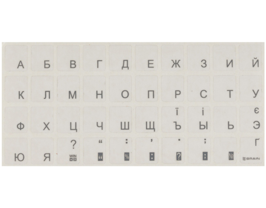 | Наклейки на клавіатуру AIN silver виготовлені з високоякісного матеріалу і покриті спеціальним тонким захисним шаром, який запобігає стиранню букв і подовжує термін служби наклейки. Наклейки на клавіатуру AIN silver добре кріпляться до поверхні клавіатури. При необхідності, наклейки на клавіатуру легко видаляються з поверхні і не залишають слідів. Не бояться вологого прибирання. Розкладка російсько-українська. Наклейки на клавіатуру AIN silver виготовлені на прозорій основі, колір - сріблястий. |