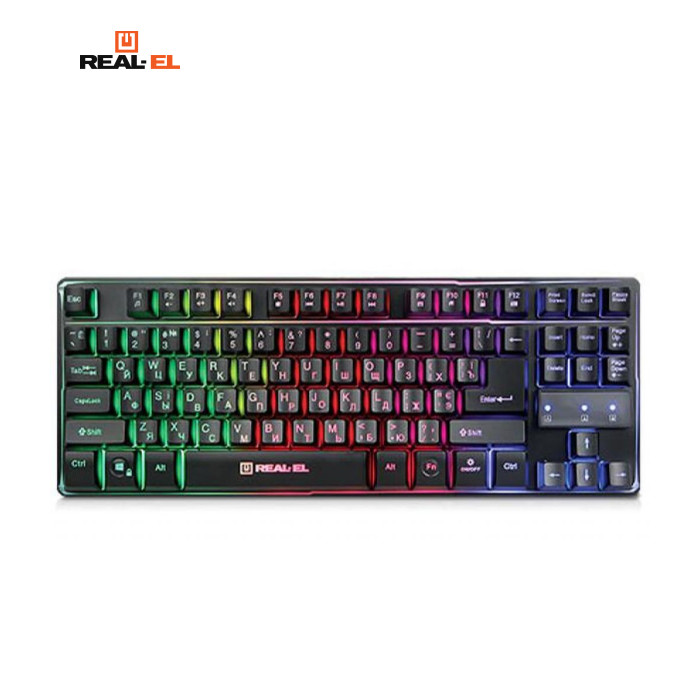 Особливістю ігрової клавіатури REAL-EL GAMING 8710 TKL Backlit є: ергономічний ігровий дизайн, металева основа, знижений шум при роботі, тихий і чіткий хід клавіш, 12 Fn кнопок швидкого доступу до Windows, Інтернету і Мультимедіа, кабель в тканинній оплітці. Багатобарвне підсвічування клавіш з різними режимами яскравості, присутній режим "дихання". Продукція ТМ REAL-EL впевнено завойовує вибір і довіру споживачів країн Євросоюзу, в тому числі і України. Компанія ретельно враховує тенденції споживчих запитів і реалізує їх за допомогою своїх технічних напрацювань і досягнень, при цьому якість і безпека продукції повністю відповідає європейським стандартам і вимогам до продукції технічного напряму. Основні напрямки досліджень і розробок: електрообладнання, альтернативні види енергопостачання, аксесуари до ПК/ноутбуків, мобільних пристроїв, а також акустичні системи. При розробці, проектуванні та виготовленні продукції торгової марки «REAL-EL» аналізуються і враховуються всі відгуки і запити покупців. Рецензії покупців - найголовніша оцінка роботи Компанії. Завдяки тісному спілкуванню, вдається запропонувати необхідну продукцію високої якості за доступною ціною. Велика увага приділяється таким аспектам як: безпека, енергозбереження, практичність і комфортабельність, сучасність і актуальність, доступність. |