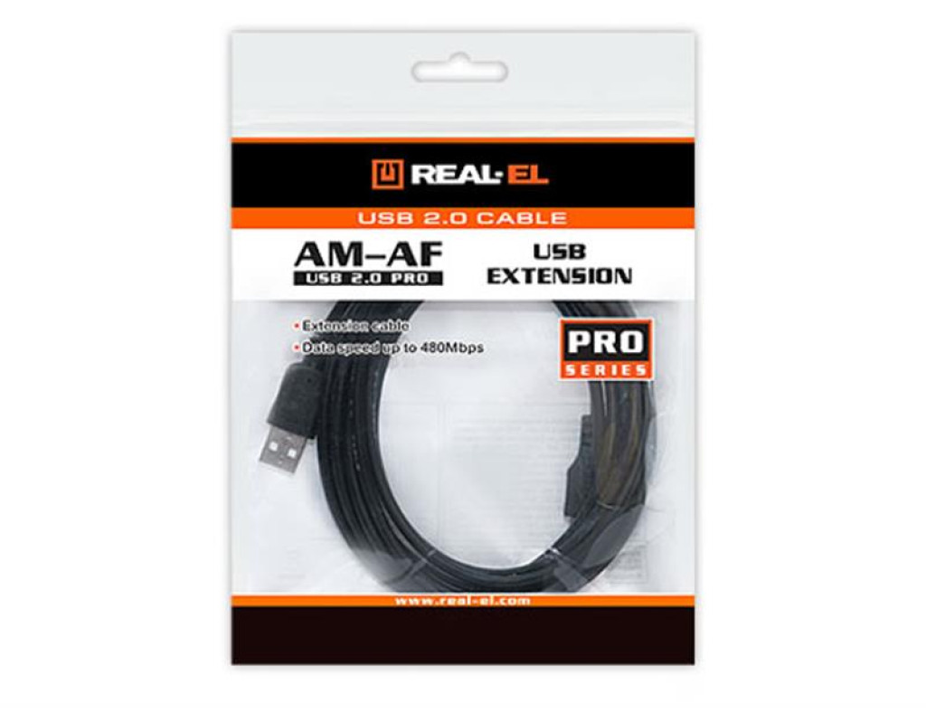 | Кабель REAL-EL USB 2.0 Pro Am-Af служить подовжувачем для підключення комп"ютера до портативних пристроїв, принтерів, сканерів тощо. Ідеальний для використання з короткими кабелями, якими комплектується більшість пристроїв. USB подовжувач Передача інформації зі швидкістю до 480 Mbps |