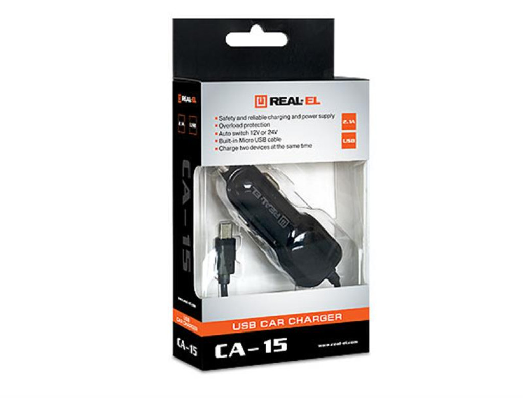 | Автомобільний зарядний USB-пристрій REAL-EL CA-15 з двома виходами призначено для живлення та заряджання акумуляторів портативних пристроїв (мобільних телефонів, смартфонів, GPS-навігаторів, MP3-плеєрів, КПК, планшетних комп"ютерів та інших цифрових пристроїв) через гніздо прикурювача від бортової мережі автомобіля. |