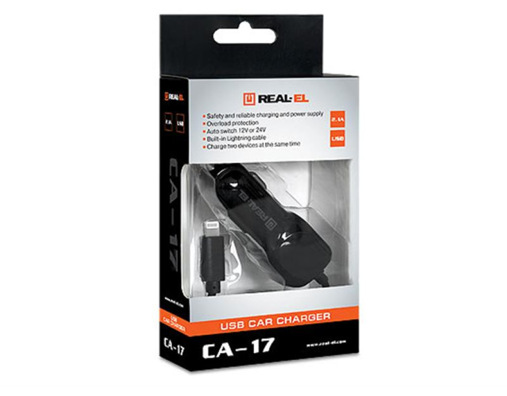 | Автомобільний зарядний USB-пристрій REAL-EL CA-17 з двома виходами призначено для живлення та заряджання акумуляторів портативних пристроїв (мобільних телефонів, смартфонів, GPS-навігаторів, MP3-плеєрів, КПК, планшетних комп’ютерів та інших цифрових пристроїв) через гніздо прикурювача від бортової мережі автомобіля. |