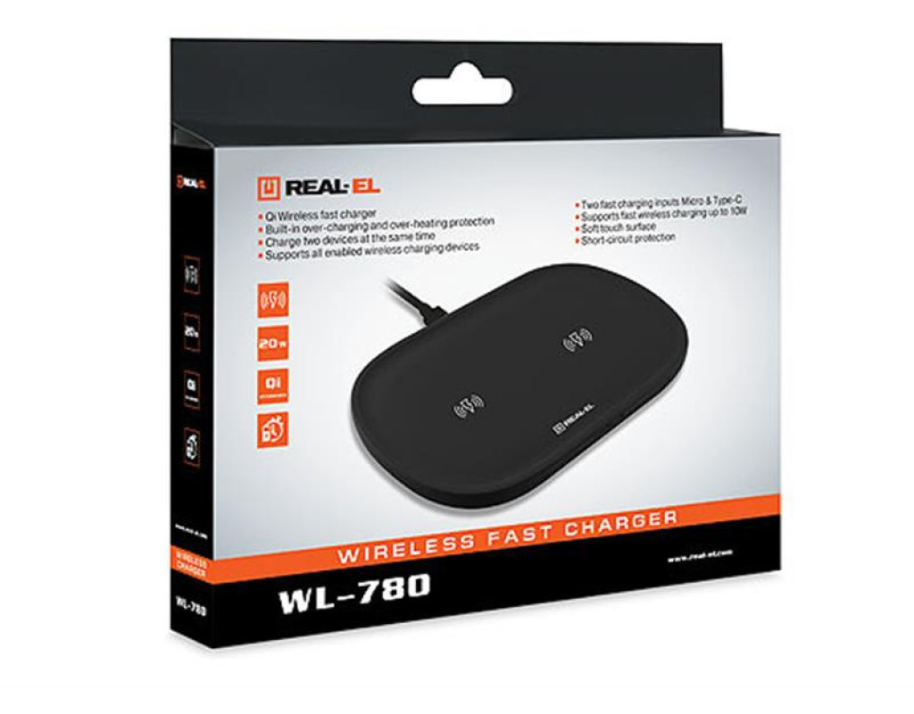 | Бездротовий зарядний пристрій REAL-EL WL-780 призначено для живлення та заряджання акумуляторів пристроїв, що підтримують технологію бездротового заряджання.