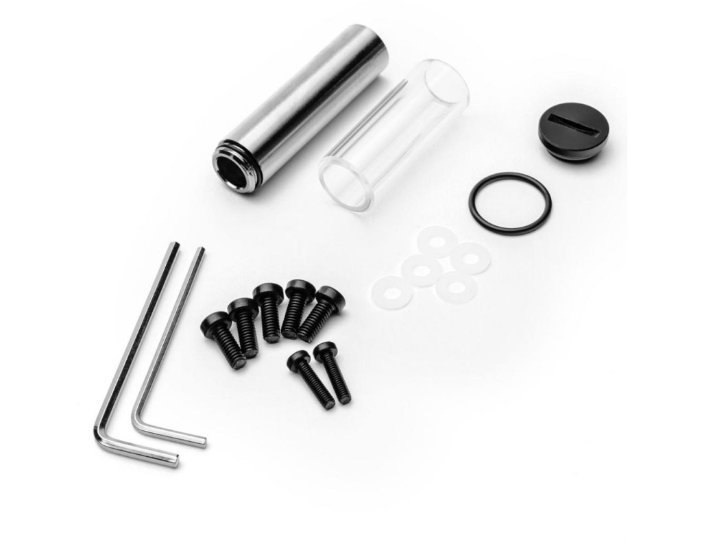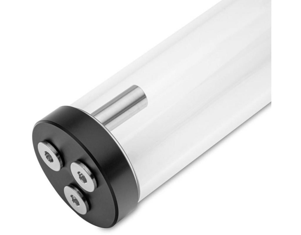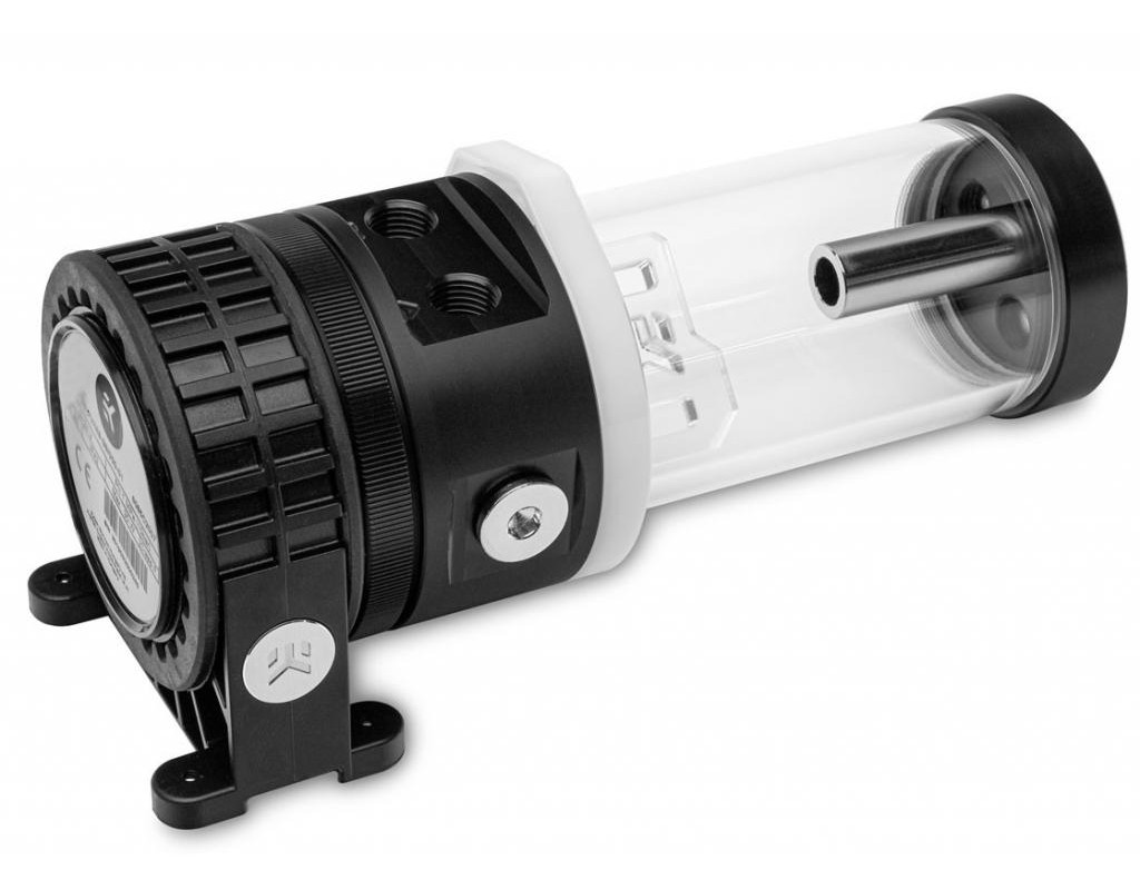 EKWB EK-Quantum Kinetic TBE 200 D5 PWM D-RGB — Acetal являє собою високоефективну водяну помпу з вбудованим резервуаром із високоякісного акрилового матеріалу. Використовувані в конструкції продукту спеціальні гумові ущільнювачі запобігають протіканню охолоджувальної рідини. Центральним елементом пристрою є водяний насос D5 PWM з підвищеною на 15% продуктивністю. Наявність автоматичного регулювання обертів насоса (ШІМ-керування) дає змогу впливати на швидкість і кількість прокачування холодоагенту залежно від температури процесора. Це забезпечить максимальну продуктивність під час максимальних навантажень і тишу в режимі простоювання. Помпа монтується всередину корпусу за допомогою посиленого кріплення (підтримується горизонтальне та вертикальне розташування) з товстим гумовим кільцем, що гасить вібрації від роботи мотора. Верхня частина колби обладнана прозорою кришкою з оргскла з трьома портами G1/4". В один із них попередньо встановлена нікельована латунна трубка, яка допомагає запобігти розбризкуванню охолоджувальної рідини (під час роботи на впуск). Інші порти можна використовувати для заповнення системи холодоагентом або встановлення додаткових аксесуарів. Ще три стандартних G1/4" розміщені нижче, у комбінованій робочій частині помпи, так що користувач може самостійно вибрати найвідповідніший для розведення планованого або наявного (під час модернізації) контуру. елементом, що виділяється, в EK-Quantum Kinetic TBE 200 D5 є масив RGB-світлодіодів з адресною підсвіткою, сумісною з більшістю материнських плат провідних виробників (приєднання здійснюється до спеціального 5V D-RGB-роз'єму). |