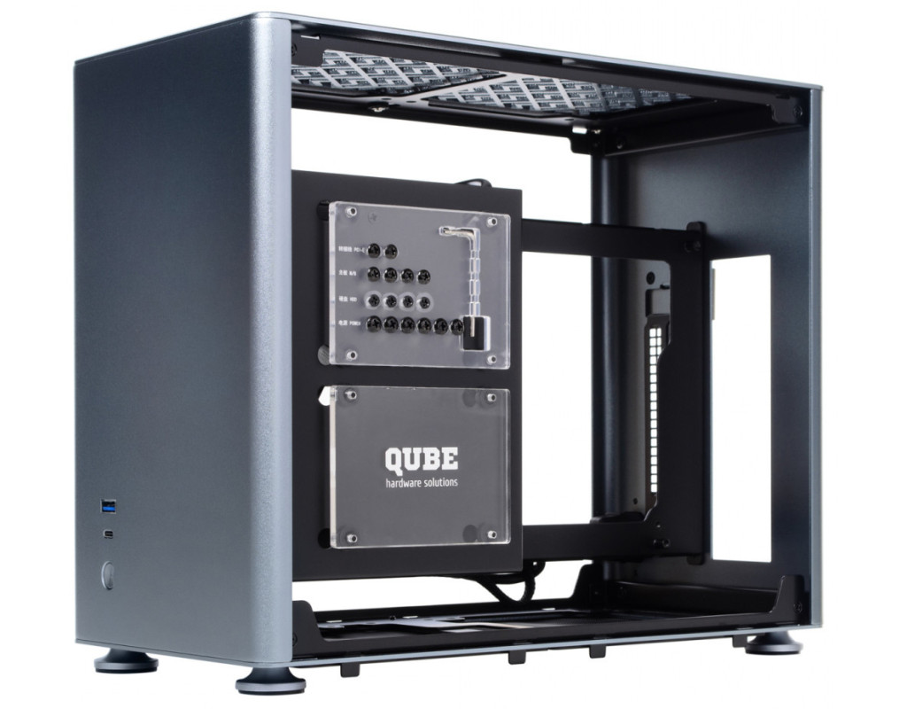 Фірмові корпуси QUBE вирізняються сучасним дизайном, продуманою конструкцією, прекрасним функціоналом і дружні до будь-якого користувача, який зважився на самостійне складання всіх необхідних комплектуючих у готовий персональний комп'ютер. Модель QUBE A4 — це просторий корпус формату MiniTower, який задовольнить вимоги переважної більшості користувачів. Всі гострі краї товстого листового металу завтовшки 1.5 мм акуратно зашліфовані або підігнуті, у такий спосіб унеможливлюється будь-яке поранення під час складання. Велике сервісне вікно для встановлення або заміни процесорного кулера, технологічні вікна для акуратного розведення та монтажу кабелів, достатній зазор за бічною кришкою — все це зроблено для вашої зручності. Бічна панель виготовлена з тонованого загартованого скла завтовшки 3 мм. Особливість конструкції корпусу — панелі з алюмінієвого сплаву, виготовлені з магнієво-алюмінієвого 2 мм листа. Таке суворе, певною мірою — мінімалістичне виготовлення, чудово підійде для користувачів, які поважають витриманий стиль і елегантність. Тут же в нижній третині панелі виробник виніс високошвидкісний порт USB 3.0, порт Type-C, велику кнопку ввімкнення живлення. На верхній грані розмістився протипиловий фільтр, що перешкоджає потраплянню дрібнодисперсних частинок усередину комп'ютера. З коробки корпус QUBE A4 постачається без встановлених вентиляторів. Користувач на бажання зможе інсталювати 4 кулери: зверху 2x120 мм; ззаду 2x120 мм. Підтримує системи водяного охолодження (СВО) завдовжки до 240 мм. |