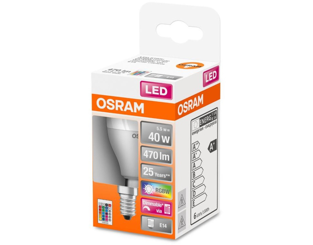 Лампочка Osram LED STAR Е14 5.5-40W 2700K+RGB 220V Р45 пульт ДУ (4058075430877)