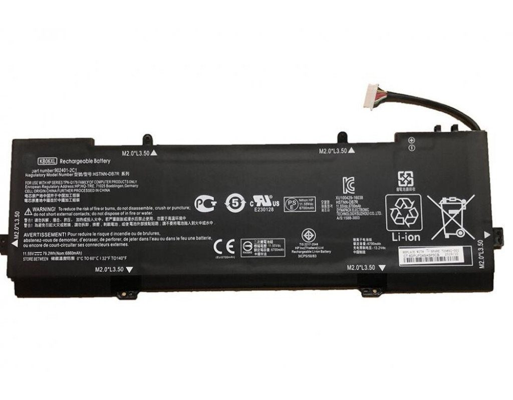 Дана акумуляторна батарея може мати такі маркування (або PartNumber): KB06XL, HSTNN-DB7R, 902499-855, 902401-2C1, TPN-Q179 Акумуляторна батарея підходить для наступних моделей ноутбуків: HP Spectre x360 15-BL series У зв'язку з динамічно розвиваючимися технологіями і регулярно оновлюваними лінійками ноутбуків, всі вищевказані списки можуть бути не повними.