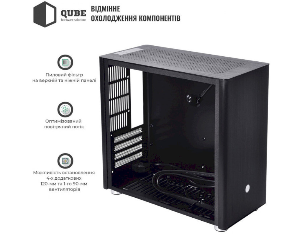 | Корпус для ПК Qube QBV9M_WBNU3 — це високоякісний вибір для геймерів, які прагнуть поєднати стильний дизайн із функціональністю. Цей корпус формату MiniTower відзначається компактними розмірами 165 x 337 x 317 мм, що робить його ідеальним рішенням для домашніх ігрових станцій та невеликих просторів. Один із ключових елементів цього корпусу — це його вражаюча конструкція. Зовнішні панелі виготовлені з анодованого алюмінію товстого профілю, що надає не лише елегантний вигляд, а й підсилює конструкцію. Ці панелі закривають внутрішній сталевий каркас з п'яти сторін, забезпечуючи надійну захищеність компонентів та стильність в одному флаконі. Не менш важливим є і те, що обробка алюмінію зефектовано надає корпусу сучасного та вишуканого вигляду. Всередині корпусу Qube QBV9M_WBNU3 усе ретельно продумано для зручного монтажу. Підтримуються материнські плати Mini-ITX та Micro-ATX, що відкриває великі можливості для вибору компонентів. Також ви можете встановити одну 3.5-дюймову та одну 2.5-дюймову накопичувачі, що задовольняє потреби більшості користувачів у зберіганні даних. Особливу увагу варто приділити вентиляції. Qube QBV9M_WBNU3 має можливість розмістити до п'яти вентиляторів для оптимального охолодження. Зверху можна встановити два вентилятори діаметром 120 мм, знизу — також два 120 мм, а ззаду — один 80 мм. Використання протипилових фільтрів на верхній та нижній гранях забезпечить захист від пилу та підтримання чистоти всередині. Блок живлення встановлюється в нижній частині корпусу, що забезпечує стабільне охолодження і зручне управління кабелями. Максимальна довжина блоку живлення не визначена, що дозволяє обрати найбільш відповідну модель саме для вашої системи. Для тих, хто планує використовувати геймерські компоненти, корпус підтримує відеокарти довжиною до 290 мм та процесорні кулери висотою до 133 мм. Зовнішні роз'єми також вражають своєю зручністю — дві високошвидкісні порти USB 3.0 та два аудіороз'єми забезпечують легкий доступ для підключення периферії та аудіообладнання. Це дозволяє швидко і комфортно інтегрувати ваші пристрої без зайвих зусиль. Інноваційний підхід до розробки вікна бічної панелі з загартованого скла товщиною 4 мм додає корпусу особливого шарму, дозволяючи милуватися встановленими компонентами та підсвіткою, якщо така наявна. Це поєднання естетики та функціональності робить Qube QBV9M_WBNU3 не просто корпусом для ПК, а виразом вашого унікального стилю і підходу до створення ідеальної ігрової системи. Цей чорний корпус з вагою всього 2.7 кг, стане не тільки надійним рішенням, але й легким у транспортуванні, що особливо актуально для тих, хто часто переміщує свою систему. Обираючи Qube QBV9M_WBNU3, ви отримаєте не тільки якісну основу для вашого ПК, але і відмінний стильний акцент у вашому інтер'єрі. |