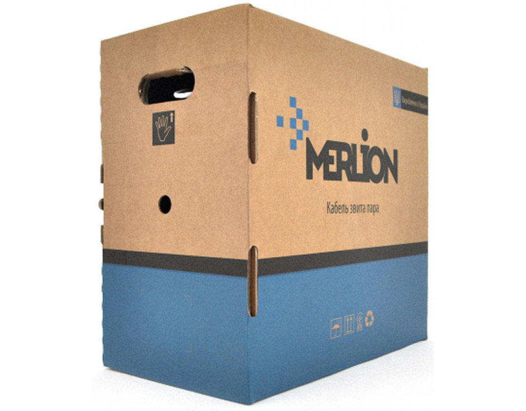Кабель Merlion вита пара КВП UTP категорії 6 для внутрішньої прокладки. Призначений для створення комп`ютерних мереж типу Ethernet, а також для систем IP-відеоспостереження, з використанням спеціальних приймально-передавачів відеосигналу, застосовується в системах аналогового або AHD відеоспостереження. Характеристики: