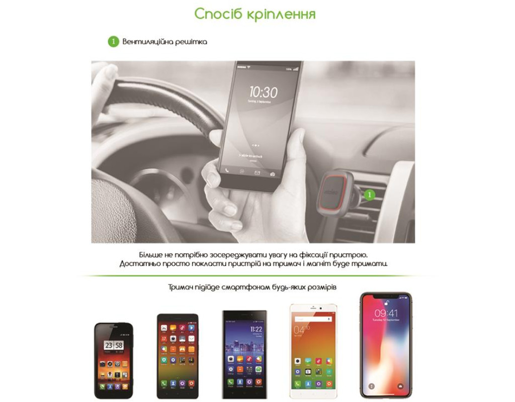 | Завдяки магнітним властивостям, смартфон можна дуже легко і швидко фіксувати на автотримачі Intaleo CM01GG. Жодних зайвих рухів — досить просто прикласти пристрій до тримача.