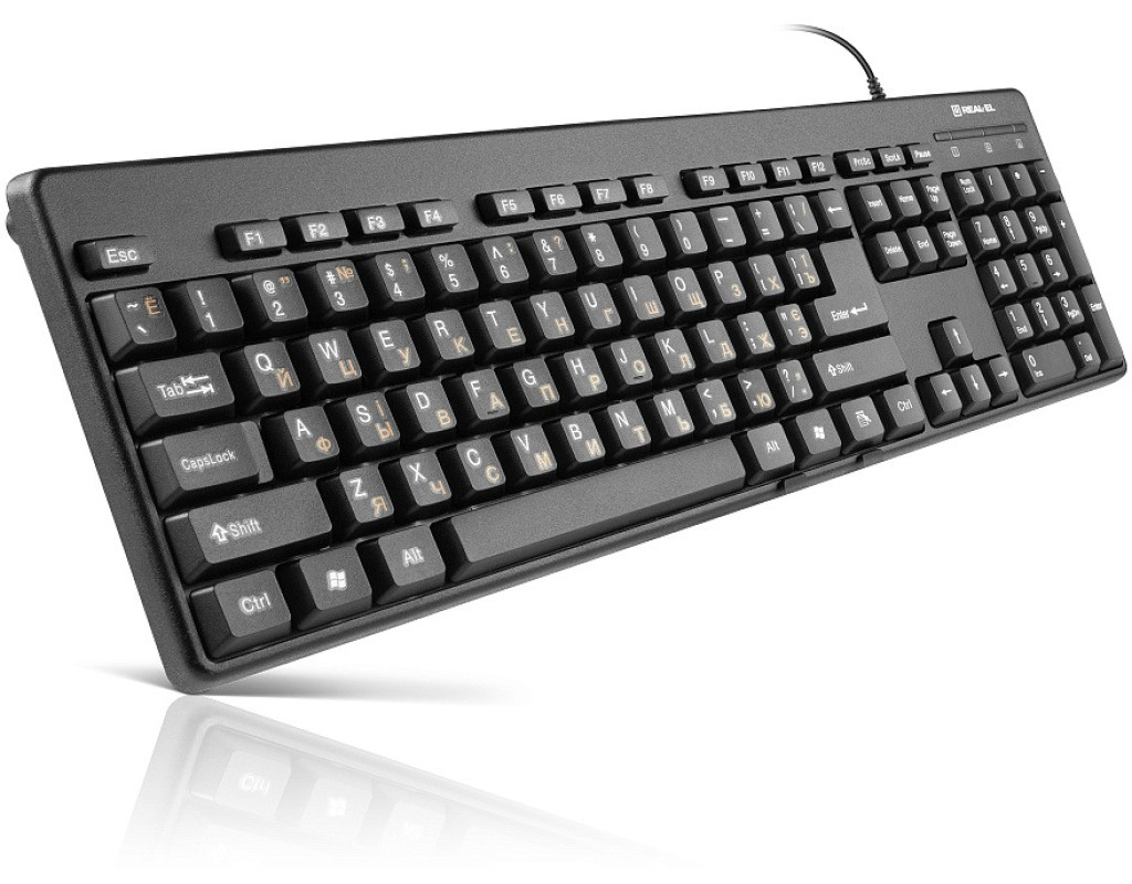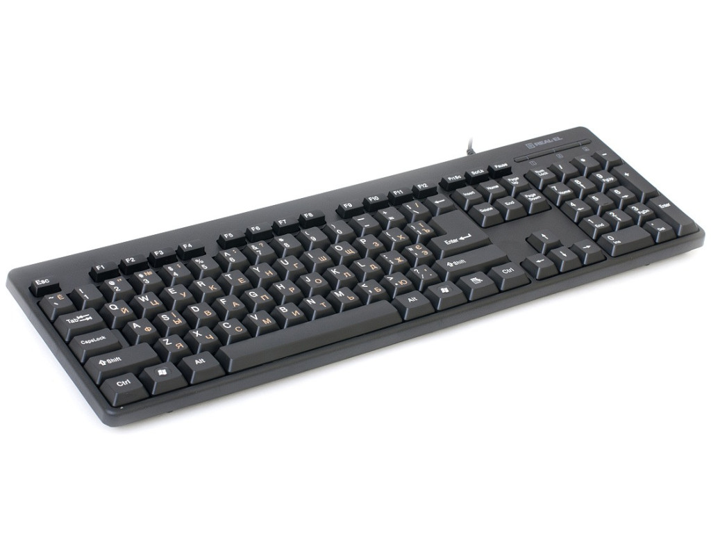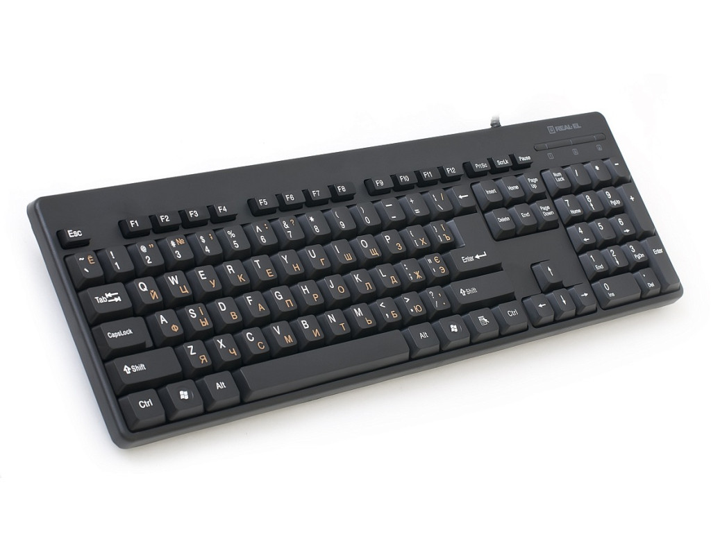 | Ергономічна конструкція, стандартний набір клавіш, інтерфейс USB, високоякісна мембрана, знижений шум при роботі - особливості клавіатури REAL-EL Standard 502 Ергономічна конструкція Стандартний набір клавіш Високоякісна мембрана Комфортний, тихий і чіткий хід клавіш Інтерфейс USB |