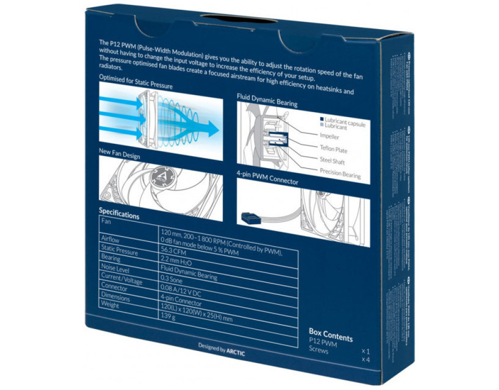 Вентилятор серії Arctic залишається безшумним навіть під час роботи на повній швидкості. Спеціальний дизайн вентилятора не тільки підвищує вироблений повітряний потік, але також неабияк знижує рівень виробленого шуму.