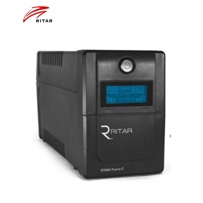 Джерело безперебійного живлення Ritar RTP800 (480W) Proxima-D (RTP800D) для використання при неполадках в живильної ланцюга для постачання електроприладів, чутливих до перепадів напруги і різкого відключення, а також приладів, для яких необхідно постійне безперебійне живлення, такі як газові котли та електрокотли, медичне обладнання тощо. Номінальна активна потужність ДБЖ становить 900 Вт. Особливості: холодний старт. Матеріал корпусу: пластик. LСD індикація. Роз'єми: 4x universal SCHUKO. |