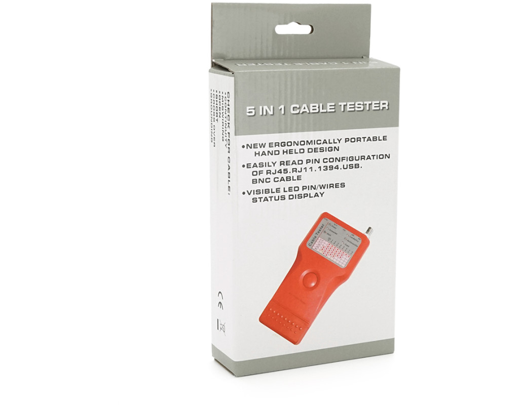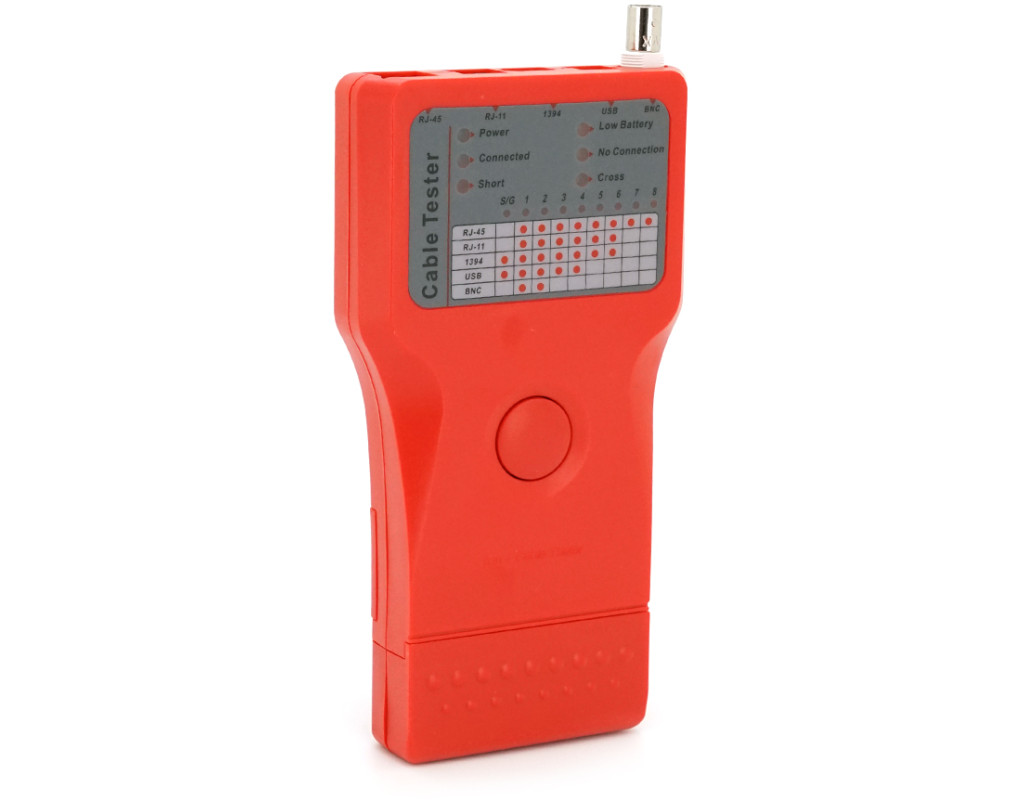 | Кабельний тестер Merlion мультифункціональний 5 в 1 призначений для тестування та виявлення різних видів кабелів: RJ-11, RJ-45, BNC, USB, 1394. Виявляє короткі замикання. Перевіряє кабель на підключення. Тестування здійснюється натисканням однієї кнопки. Обладнано індикатором заряду батареї. особливості: • Дистанційне управління • Перевірка кабелів: RJ-45, RJ-11, BNC, 1394, USB • Просте використання натисканням кнопки • Функція світлового та звукового сповіщення про результати перевірки • Індикація низького заряду батареї • Підсвічування та навушники • Можливість тестування кабельних ліній завдовжки до 180 м • Тестування встановлених патч-кабелів • Тестер та пульт дистанційного керування з RJ-45, RJ-11, 1394 (Fire wire), USB-B та BNC • Знімний пульт дистанційного керування з роз`ємами RJ-45, RJ-11, 1394 (Fire wire) та USB-A Характеристики: • Рознімання - RJ-11 / RJ-45 / BNC / USB / 1394 • Колір помаранчевий |