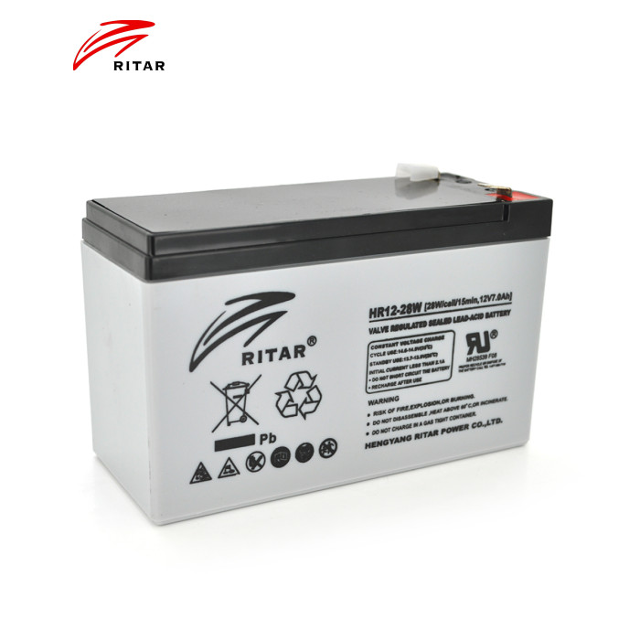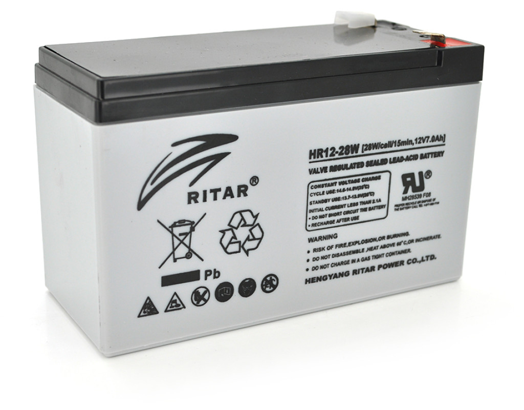 | Акумуляторна батарея (VRLA) серії HR призначена для великого навантаження, має високу потужність і довгий термін служби у Float (буферному) режимі. Акумуляторна батарея серії HR має на 30% більше потужності, ніж стандартні серії і використовується в системах резервного живлення з ДБЖ. Технічні характеристики: Кількість елементів: 6 Напруга: 12 В Номінальна ємність: 7 A / год при 20 годинному розряді до 1,75 В на елемент при 25°C Вага: 2,17 кг (Допуск ± 5,0%) Внутрішній опір: 22 мОм Тип клем: F2 Максимальний струм розряду: 70 А (5 секунд) Струм короткого замикання: 390 A Термін придатності: 10 років Максимальний зарядний струм: 0,7 A Контрольна ємність: C10 6,5 AH C20 7,0 AH Напруга заряду в буферному режимі: 13,7 В ~ 13,9 В при 25 ° С Температурна компенсація: -3 мВ / °C / елемент Напруга заряду в циклічному режимі: 14,6 В ~ 14,8 В при 25 ° С Температурна компенсація: -4 мВ / °C / елемент Діапазон робочих температур: розряд: -20°C ~ 60°C заряд: 0 ° C ~ 50 ° C зберігання: -20 ° C ~ 60 ° C Нормальний діапазон робочих температур: 25±5°C Матеріал корпусу: A.В.S. UL94-HB, UL94-V0 Саморозряд: Акумулятори RITAR з регульованою свинцевою кислотою (VRLA) можуть зберігатися до 6 місяців при температурі 25 ° C, а потім рекомендується підзарядка. Щомісячний коефіцієнт саморозряду становить менше 3% за 25 ° C. Будь ласка, зарядіть батареї перед використанням. Зверніть увагу! Недотримання напруги та струмів заряду-розряду може призвести до пошкодження акумулятора та втрати гарантії. |