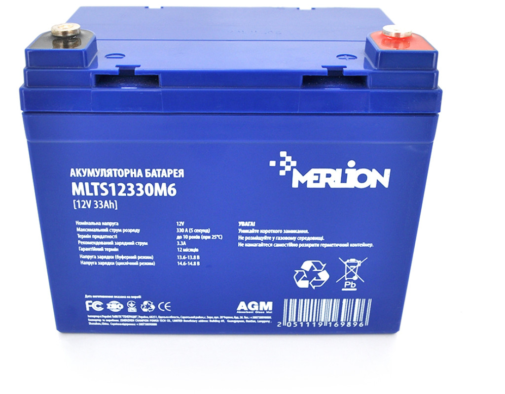 | Акумуляторна батарея MERLION EURO AGM MLTS12330M6 – використовується в пристроях з невеликим споживанням енергії. Тому необхідно потурбуватися про якісний акумулятор, щоб забезпечити надійну, довгострокову роботу пристроїв. Акумуляторна батарея MERLION – твій вибір! Застосування: • джерела безперебійного живлення • у сонячних та вітрових установках; • у телекомунікаціях та промообладнанні; • в електростанціях; • у системах резервного освітлення • у складі систем відеоспостереження, сигналізації, контролю доступу • у мережах пожежно-охоронних автоматизованих комплексів Характеристики: • Кількість елементів: 6 • Напруга: 12 В • Номінальна ємність: 33 A / год при 20-годинному розряді до 1,75 В на елемент при 25 °C • Внутрішній опір 9 мОм • Тип клем: F11 (M6) • Максимальний струм розряду: 330 А (5 секунд) • Максимальний зарядний струм: 9,9 A • Напруга заряду в буферному режимі: 13,7 В ~ 13,9 В при 25 ° С • Температурна компенсація: -3 мВ / °C / елемент • Напруга заряду в циклічному режимі: 14,6 В ~ 14,8 В при 25 ° С • Температурна компенсація: -4 мВ / °C / елемент • Діапазон робочих температур: - розряд: 10°C ~ 60°C - заряд: 10 ° C ~ 50 ° C - зберігання: 10°C ~ 60°C • Нормальний діапазон робочих температур: 25±5°C • Матеріал корпусу: пластик • Саморозряд: - може зберігатися до 6 місяців при температурі 25°C, а потім рекомендується підзаряджання. Щомісячний коефіцієнт саморозряду становить менше 3% при 25°C. • Вага: 11,8 кг (Допуск ± 5,0%) • Розміри (ДхШхВ): 195x130x155 мм |