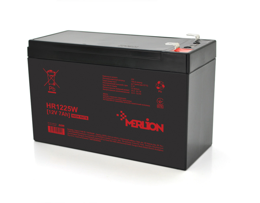 | Акумулятори серії HR (High Rate) розроблені з використанням технології з низьким внутрішнім опором, з використанням пластин з високими експлуатаційними характеристиками та електроліту для забезпечення додаткової вихідної потужності для ДБЖ та системи резервного живлення. Застосування • Системи аварійного живлення • Комунікаційне обладнання • Системи телекомунікацій • Джерела безперебійного живлення особливості: • Висока надійність та стабільність • Герметична конструкція • Не вимагає технічного обслуговування • Довгий термін служби • Низький рівень саморозряду • Збільшена на 30% вихідна потужність Характеристики: • напруга – 12 V • ємність - 7 Ah • кількість елементів – 6 • саморозряд – менше 3% на місяць • внутрішній опір – 28 mΩ • струм заряду – 2,1 А • максимальний струм розряду – 70А (5 сек) • тип клем - F2 • напруга заряду (буферний режим) - 14,4 -14,7 V • напруга заряду (циклічний режим) - 13,5 -13,80 V • матеріал корпусу – пластик • розміри акб – 151x65x100 мм • вага – 2 кг (допуск ± 5,0%) |