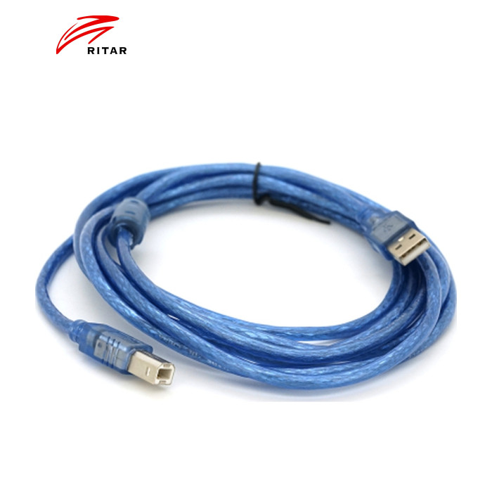 Цей кабель USB 2.0 має роз`єм типу A Male і B Male, що дозволяє підключати пристрої з різними роз`ємами. Довжина кабелю становить 3.0 метри, що забезпечує зручність при підключенні пристроїв на великій відстані. Присутність фериту на кабелі допомагає у зниженні перешкод та електромагнітних інтерференцій. Колір кабелю – прозорий синій.