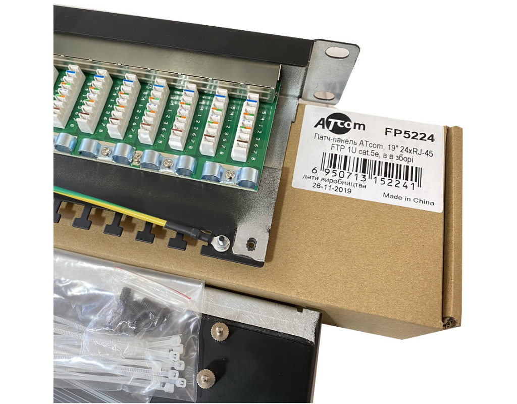 Патч-панель Atcom 19" 24 порта FTP 1U cat.5e with cable organizer (FP5224)
