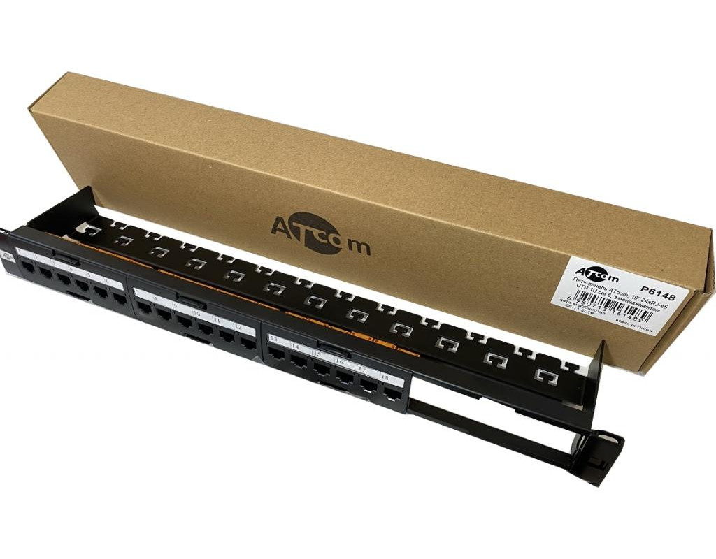 Патч-панель 19" 24хRJ-45 UTP 1U cat.6, в зборі з Keystone, Organizer Atcom (P6148)