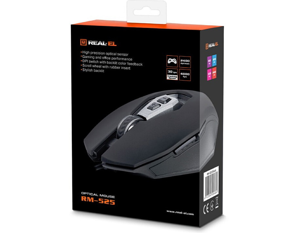 | Високоточна оптична технологія дає змогу ігровій оптичній миші REAL-EL RM-525 працювати практично на будь-якій поверхні. Особливості: висока швидкість роботи, 6 + 1 клавіші, коліщатко прокручування, 2 кнопки навігації «вперед» і «назад», перемикач роздільної здатності, вмонтоване підсвічування. |