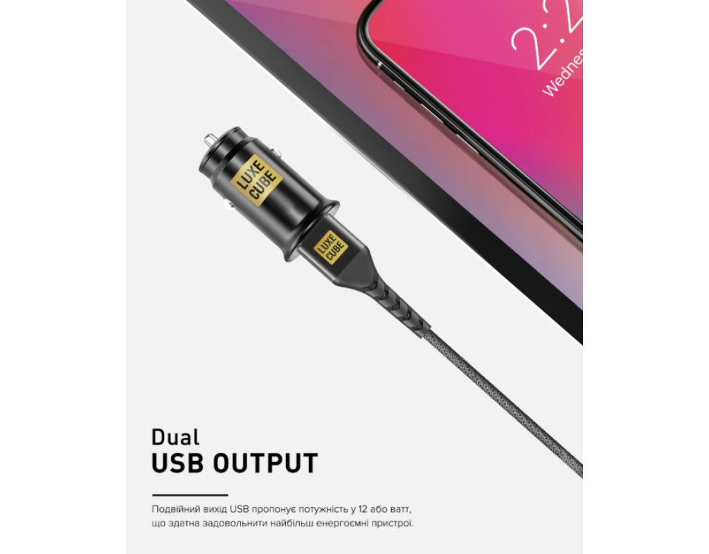 | Автомобільні зарядні пристрої оснащені адаптивною технологією Smart CHIP, яка автоматично виявляє потрібну саме вашому пристрою потужність, та спрямовує її, забезпечуючи найбільш оптимальну швидкість заряду.