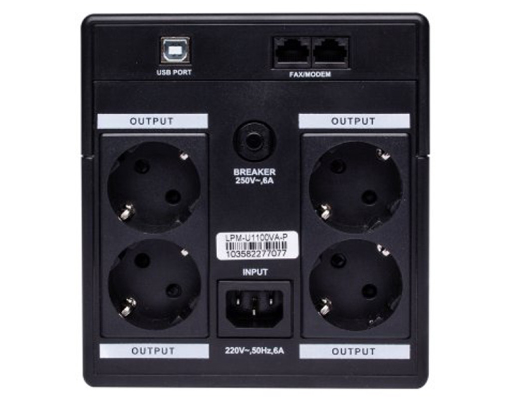 Лінійно-інтерактивне джерело безперебійного живлення LPM-U1100VA-P забезпечує резервне живлення комп"ютерної техніки та виконує функції стабілізатора напруги в мережі. До ДБЖ LogicPower LPM-U1100VA-P можна одночасно під"єднати чотири одиниці техніки сумарною потужністю до 770 Вт. Тип підключення - стандартна розетка європейського типу. Функції холодного старту і повторного запуску при відновленні напруги в мережі, запускаються автоматично за допомогою мікропроцесора нового покоління. Робоча вхідна напруга - 145-290V. Результат на виході - стабільно 220V±10% (оптимальна напруга для комфортної роботи офісної техніки). Ця модель ДБЖ оснащена роз'ємом RJ - 11 та функціональним USB портом, за допомогою якого можна переглядати вхідну або вихідну напругу, режими пристрою (частота, рівень заряду/розряду батареї, навантаження інвертора, температура). Так само можна перевірити тривожну ситуацію: від"єднання ДБЖ, відключення від мережі, низька напруга батареї, вимкнення ДБЖ, несправності, тестування та байпас. Про ці та інші функції можна детальніше прочитати в інструкції "PowerManager II". |