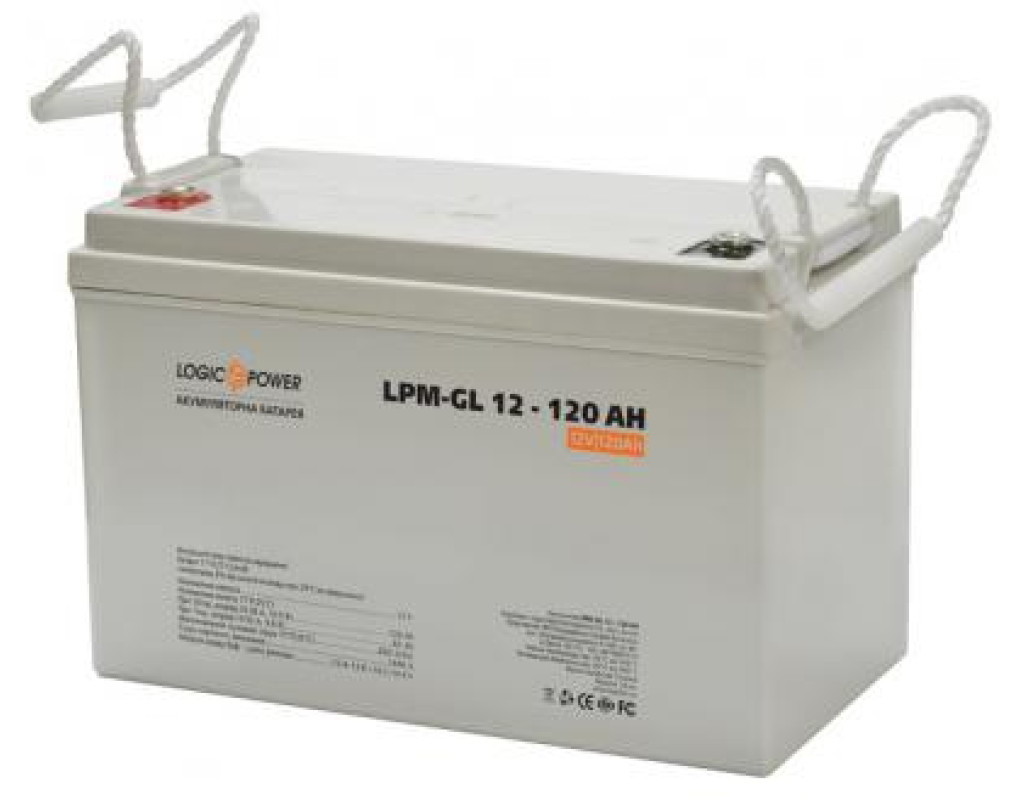 Батарея до ДБЖ LogicPower LPM 12В 120Аг (+3870) - це гелева акумуляторна батарея великої ємності з високим ступенем надійності і безпеки. Перевага гелевою акумуляторної батареї над мультигелевий полягає в подовженому терміні служби і жорсткості експлуатації в наслідок зміненої технологи виготовлення. Ємність батареї становить 120 Ампер годин а вихідна напруга дорівнює 12 В. В основному така батарея застосовується для резервного живлення на пару з безперебійним блоком живлення.