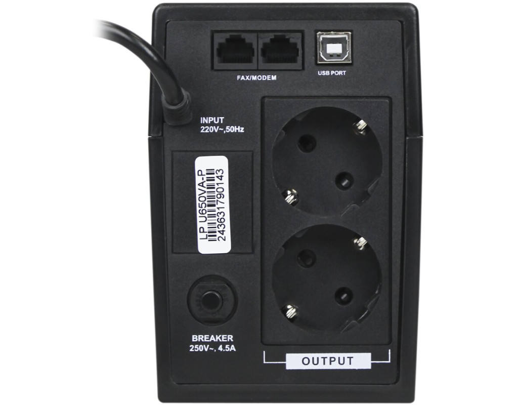 | Пристрій безперебійного живлення LogicPower U650VA-P USB (2436) – витончена та ефективна модель, яка служить надійним захисником вашої електроніки. В умовах нестабільної електромережі, цей лінійно-інтерактивний ДБЖ забезпечує безперервне живлення приладів у вашому будинку чи офісі, завдяки потужності в 390 Вт та номіналу в 650 В*А. Він ідеально підходить для захисту електроніки від раптових стрибків напруги, короткого замикання, а також від перевантаження і дисбалансу мережі. Завдяки функціям автоматичного заряджання навіть у режимі вимкнення, цей ДБЖ гарантує, що ви залишитесь на зв'язку, коли це найбільше потрібно. Вхідна напруга в діапазоні від 170 до 250 В дозволяє оптимально працювати в умовах різних варіацій напруги, забезпечуючи стабільність і надійність. Форма вихідної напруги - апроксимована (ступінчаста) синусоїда – ефективно підтримує більшість електронних пристроїв без перебоїв. Пристрій обладнано вбудованою акумуляторною батареєю 12V / 7.5AH, яка гарантує тривалий час роботи, забезпечуючи додатковий рівень безпеки. До двох Euro-розеток (Schuko) можна підключити найважливіші пристрої, такі як комп'ютери, модеми або інша електроніка, а додатковий фільтр RJ-11 захистить телефонну лінію від перенапруги. Інтерфейс підключення USB дозволяє зручно налаштовувати та контролювати роботу ДБЖ, підвищуючи загальну зручність у використанні. LogicPower U650VA-P USB (2436) – це оптимальне рішення для створення якісної системи резервного живлення, яке поєднує високу якість, доступну вартість та широкий функціонал, що робить його незамінним помічником у будь-яких умовах експлуатації. Оцініть переваги цього функціонального та економного приладу, забезпечте безпечну роботу вашої техніки без зайвих турбот! |