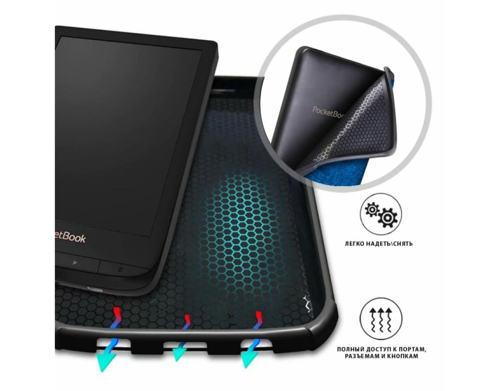 Колір - синій, штучна шкіра, Сумісність - PocketBook 606, PocketBook 628, PocketBook 633, обкладинка, Спосіб кріплення - магнітне кріплення
