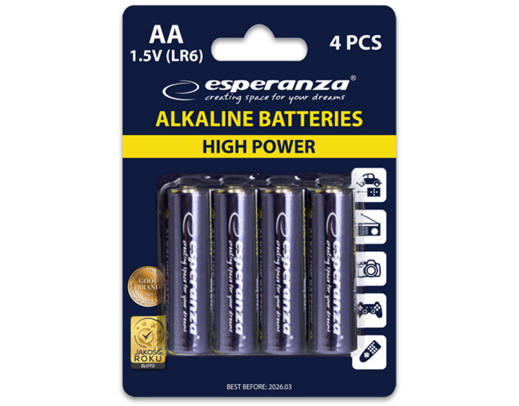 Батарейки Esperanza довго зберігаються до початку експлуатації без втрати якості. Ідеально підходять для живлення побутових пристроїв із стандартним енергоспоживанням, таких як годинник, радіоприймачі, пульти дистанційного керування, плеєри, диктофони, електробритви, ваги, фотоапарати, комп’ютерні миші, ліхтарі, радіостанції. |