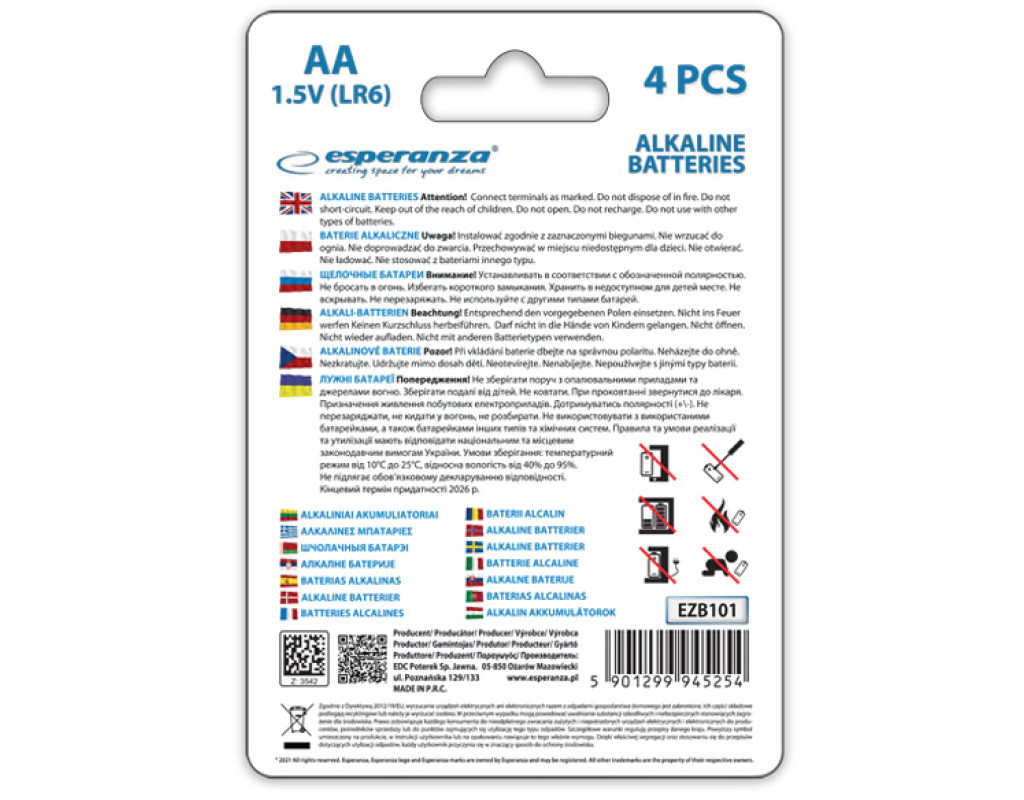 | Батарейки Esperanza AA LR6 Alkaline * 4 (EZB101) — надійний вибір для вашої електроніки. Завдяки циліндричній формі та стандартному типорозміру AA, вони підходять для широкого спектра пристроїв. Упаковка містить чотири батарейки, що дозволяє живити кілька гаджетів одночасно. Високоякісний лужний склад забезпечує тривалий термін служби без втрати потужності, роблячи їх ідеальними для пристроїв зі стандартним енергоспоживанням: від годинників і пультів до радіостанцій і електробритв. Esperanza гарантує стабільну роботу ваших гаджетів, що підвищує комфорт і зручність у повсякденному житті. |