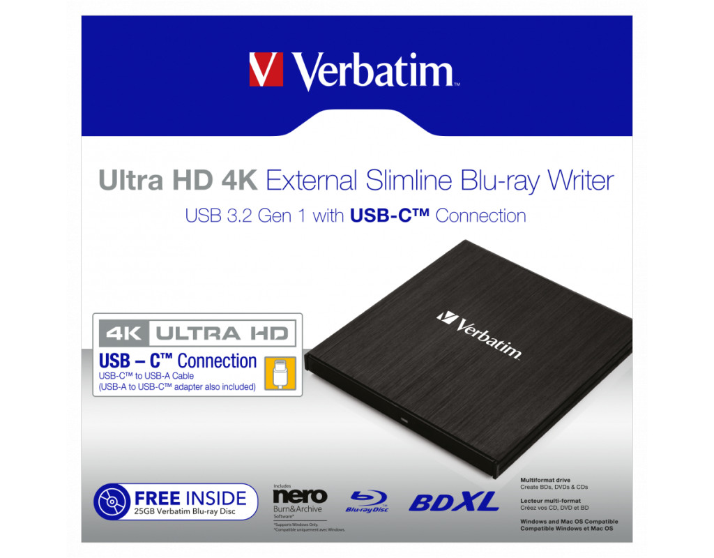 Забезпечте збереження ваших даних Оптичні диски швидко стають найнадійнішим носієм для архівації даних. На жаль, дедалі більше виробників ноутбуків приймають рішення вилучити оптичний привод зі своїх пристроїв для полегшення конструкції. Компанія Verbatim знайшла розв'язання цієї проблеми завдяки компактному зовнішньому писальному приводу 4K Ultra HD Blu-ray. Його можна використовувати для створення резервних копій усіх важливих файлів, які ви не хочете втратити, сімейних світлин, відеозаписів, бухгалтерських документів тощо. Відтворення Blu-ray у форматі 4K Ultra HD Дивіться записи на ваших дисках Blu-ray в 4K Ultra HD на цьому зовнішньому програвачі Blu-ray*. Розмір пристрою не набагато перевершує сам диск Blu-ray, живлення здійснюється через USB-порт і додатковий мережевий адаптер не потрібен, тому його легко можна брати з собою в дорогу. Програмне забезпечення Nero Burn&Archive Компактний зовнішній писальний привод Blu-ray Ultra HD 4K сумісний із великим спектром оптичних дисків. Можна використовувати диски від BDXL 100 ГБ до звичайного CD 700 МБ! У комплект постачання приводу входить програмне забезпечення Nero Burn and Archive ** з численними функціями, включно з DiscSpan, MediaHome і технологією SecureDisc. Він допоможе вам успішно систематизувати, записувати та архівувати важливі файли. Різні можливості відтворення потокового відео, включно з програмою Nero Streaming Player, дадуть вам переглядати фільми, світлини, слайд-шоу та інші види мультимедійних файлів на різноманітних пристроях, як-от смартфон, планшети й Смарт ТВ. Ви навіть можете додати пароль для додаткового захисту даних, а також електронний підпис, щоб поставити всіх до відома про те, що авторські права належать вам. Швидка запис Ви можете записувати стандартні DVD-диски на швидкості 8x, одношарові та двошарові диски Blu-ray на швидкості 6x, а диски BDXL — на швидкості 4x. Писальний привод Blu-ray 4K Ultra HD підтримує захист від спустошення буфера, що запобігає виникненню проблем у процесі запису. Заощадження енергії Писальний привод Blu-ray також був спеціально розроблений для заощадження енергії. Він підтримує технологію Zero Power ODD (Optical Disc Drive), яка унеможливлює споживання енергії під час простою оптичних приводів в операційній системі для заощадження енергії. * Програмне забезпечення для відтворення не входить у комплект постачання. Його необхідно купити або завантажити окремо. ** Програмне забезпечення Nero Burn&Archive може використовуватися тільки на PC |
