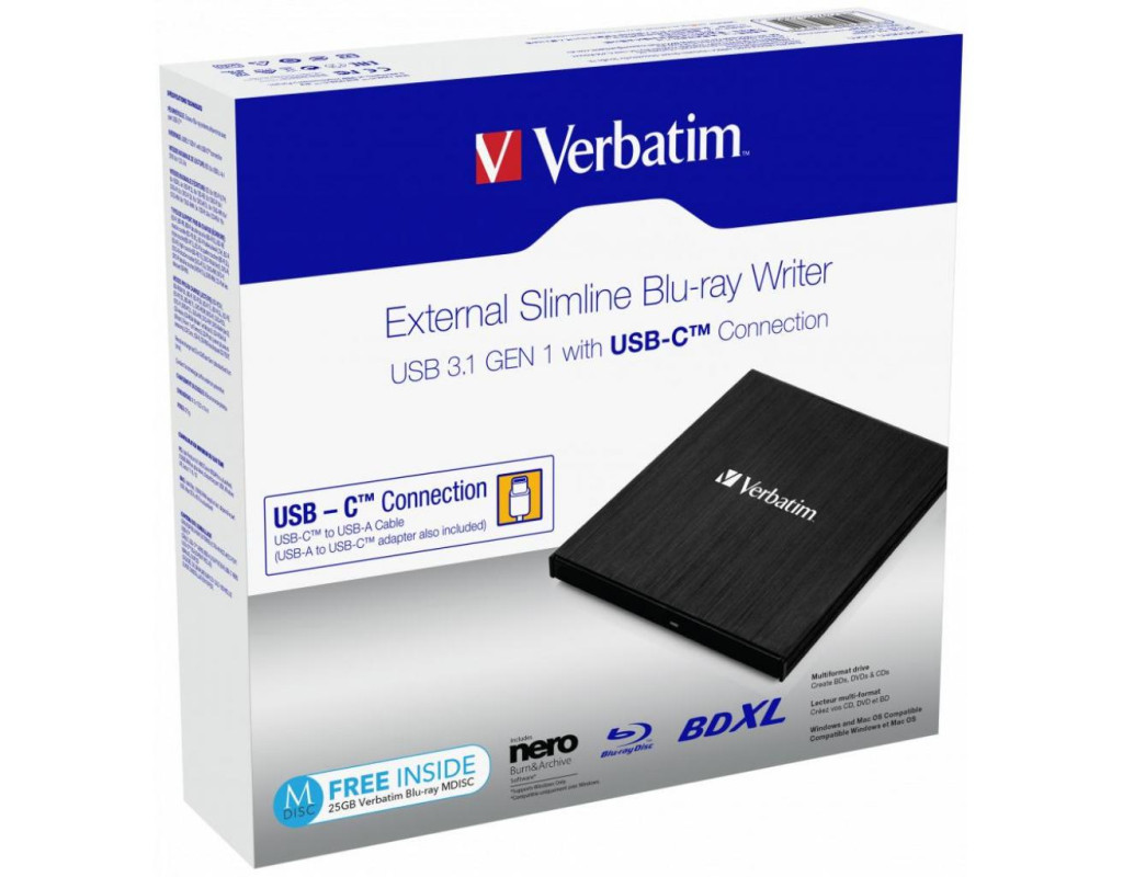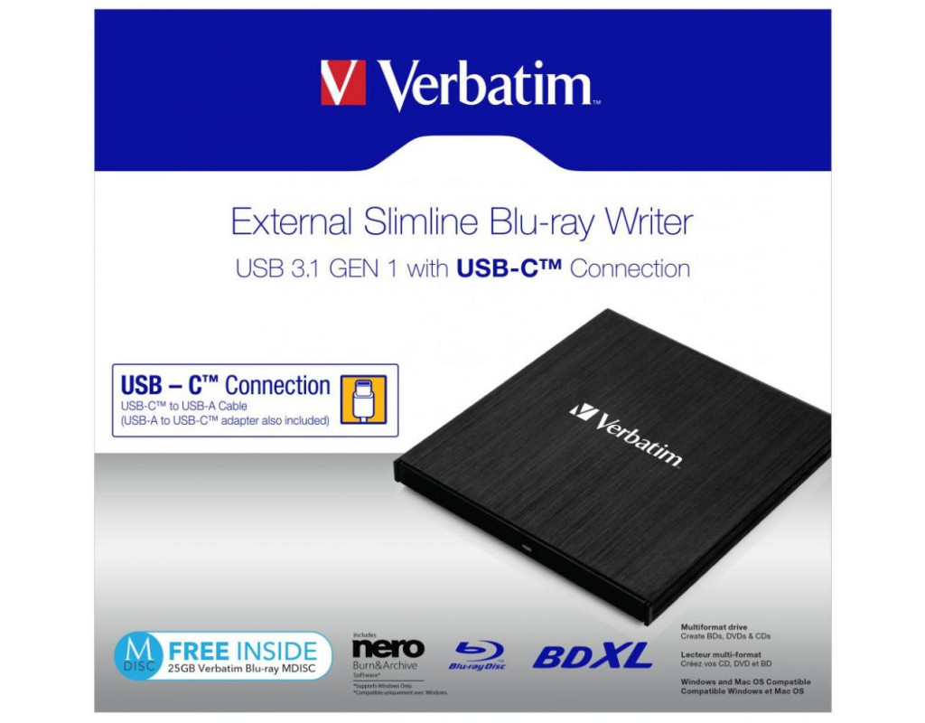 Забезпечте безпеку ваших даних Оптичні диски швидко стають найнадійнішим носієм для архівації даних. На жаль, дедалі більше виробників ноутбуків приймають рішення вилучити оптичний привод зі своїх пристроїв для полегшення конструкції. Компанія Verbatim знайшла розв'язання цієї проблеми завдяки компактному писальному приводу Blu-ray з роз'ємом USB-C. Його можна використовувати для створення резервних копій усіх важливих файлів, які ви не хочете втратити, - сімейних світлин, відеозаписів, бухгалтерських документів тощо. Відтворення Дивіться записи на ваших дисках Blu-ray і DVD на цьому зовнішньому програвачі Blu-ray *. Розмір пристрою не набагато перевершує сам диск Blu-ray, живлення здійснюється через USB-порт і додатковий мережевий адаптер не потрібен, тому його легко можна брати з собою в дорогу. *Програмне забезпечення для відтворення не входить у комплект постачання. Його необхідно придбати або завантажити окремо. Програмне забезпечення Nero Burn&Archive* Зовнішній компактний писальний привод Blu-ray сумісний з широким спектром оптичних дисків. Можна використовувати диски від BDXL 100 ГБ до звичайного CD 700 МБ! У комплект постачання входить програмне забезпечення Nero Burn and Archive ** з численними функціями, включно з DiscSpan, MediaHome і технологією SecureDisc. Він допоможе вам успішно систематизувати, записувати та архівувати важливі файли. Різні рішення для відтворення потокового відео, включно з програмою Nero Streaming Player, дадуть вам переглядати фільми, світлини, слайд-шоу та інші види мультимедійних файлів на різноманітних пристроях, як-от смартфон, планшети й Смарт ТВ. Ви навіть можете додати захист паролем для додаткової безпеки, а також електронний підпис, щоб поставити всіх до відома про те, що авторські права належать вам. **Програмне забезпечення Nero Burn&Archive може використовуватися тільки на PC Швидка запис Записуйте стандартні диски DVD зі швидкістю 8х, одношарові та двошарові диски Blu-ray — зі швидкістю 6х, а диски BDXL — зі швидкістю 4х. Компактний писальний привод Blu-ray підтримує захист від спустошення буфера, що запобігає виникненню проблем у процесі запису. Заощадження енергії Цей писальний привод Blu-ray також був спеціально розроблений для заощадження енергії. Він підтримує технологію Zero Power ODD (Optical Disc Drive), яка унеможливлює споживання енергії під час простою оптичних приводів в операційній системі для заощадження енергії. |