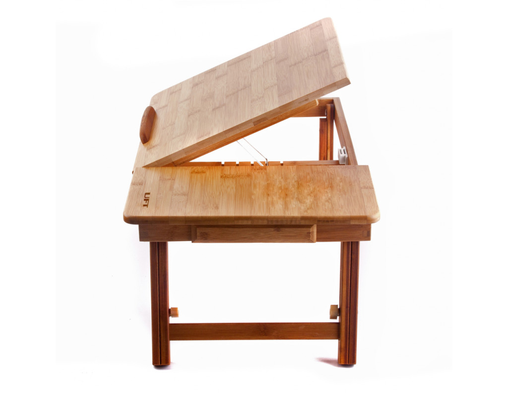 | Екологічний складаний столик для ноутбука або планшетного комп'ютера UFT T27 strong> принесе Вам масу комфорту і задоволення від роботи або відпочинку. Окремо від каркаса стільниці передбачено регулювання кута нахилу стільниці для установки ноутбука або планшетного комп'ютера під різними кутами для комфортного користування. Також на майданчику поруч з робочою поверхнею стільниці передбачена підставка під чашечку з запашної кави або з тонізуючим чаєм. Компанія UFT йде в ногу з часом - тому також на поверхні додаткового майданчика передбачено місце для безпечного розміщення Вашого смартфона при підзарядці від ноутбука або просто для фіксації. |