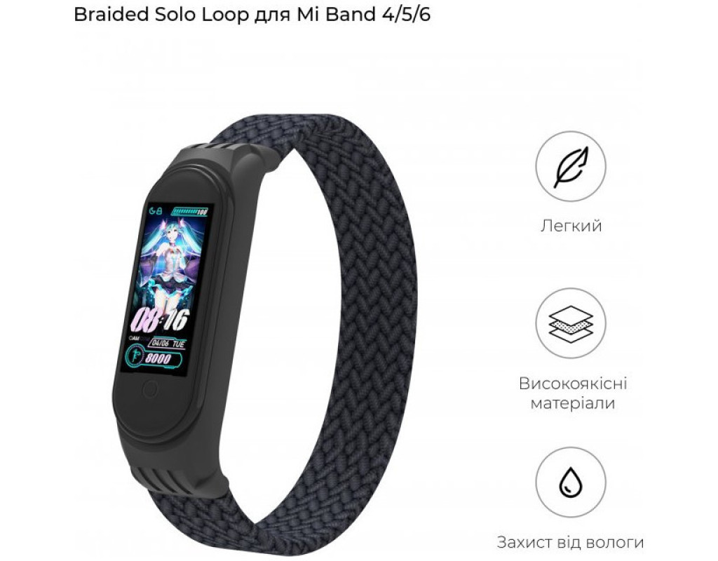 Ремінець до фітнес браслета Armorstandart Braided Solo Loop для Xiaomi Mi Band 4/5/6 Charcoal size L (ARM58759)