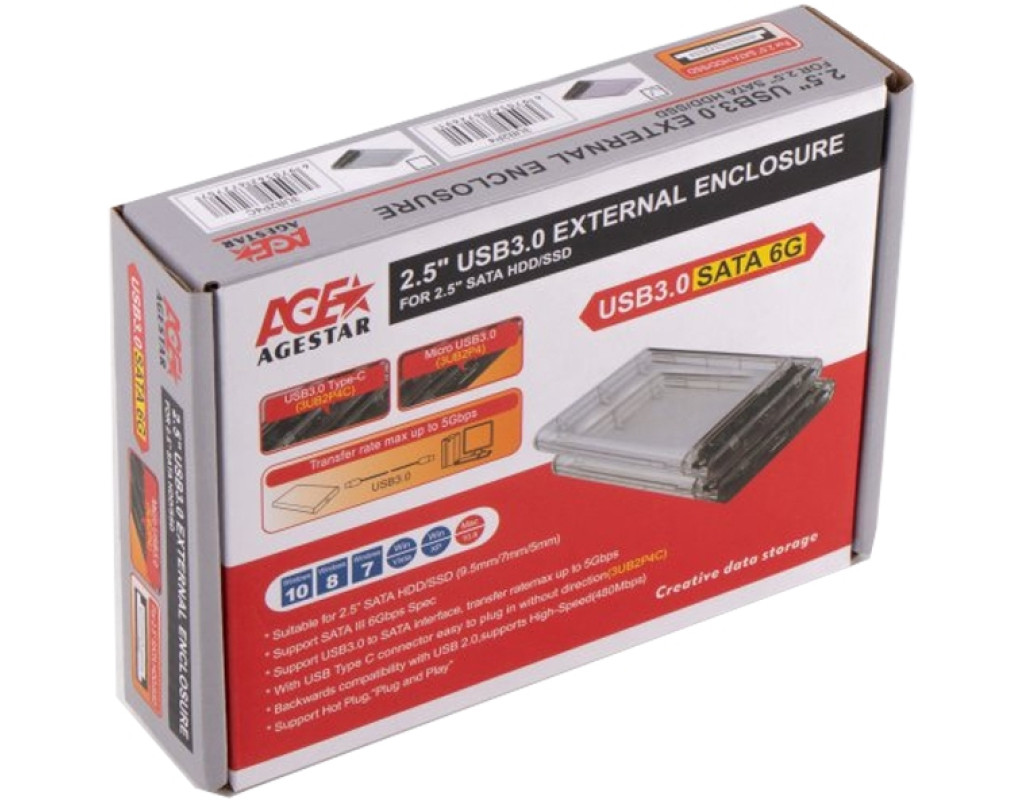 Зовнішній корпус має безгвинтову конструкцію, яка дає змогу швидко та легко підключати SATA HDD/SSD і передавати інформацію через інтерфейс USB 3.0 Особливості: