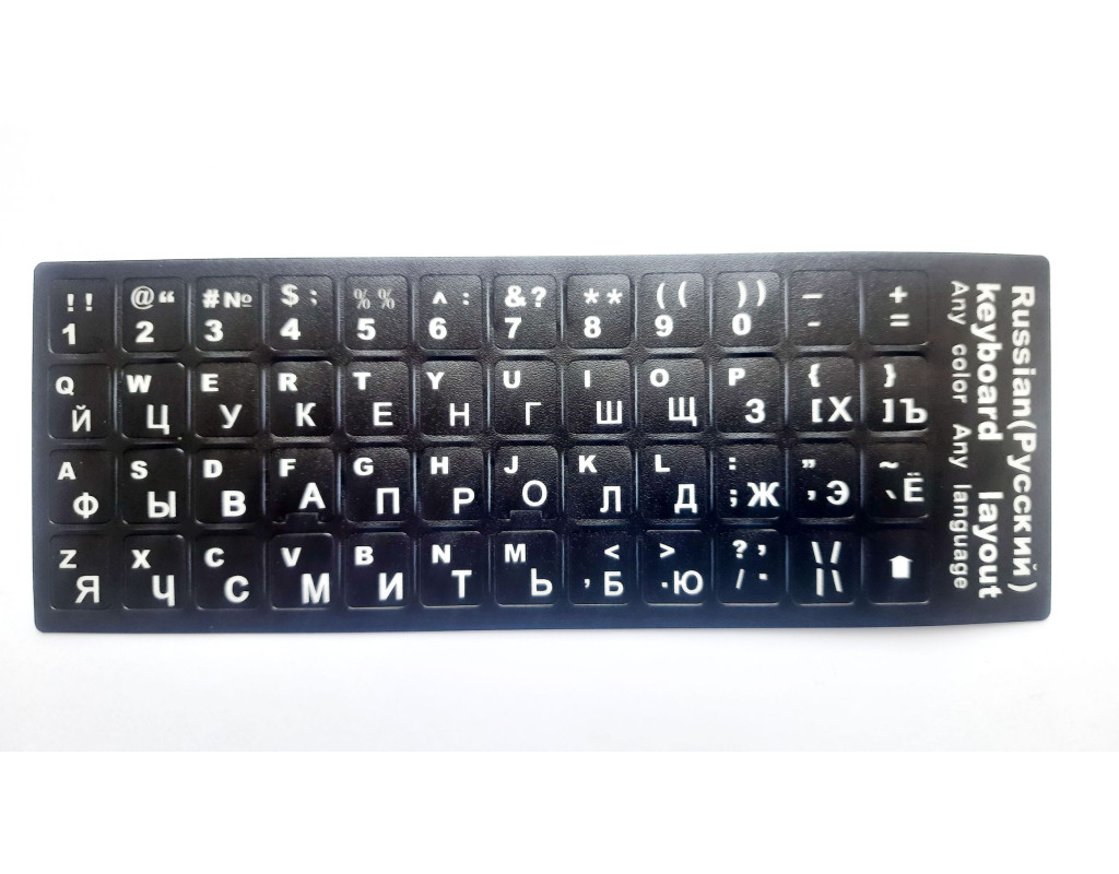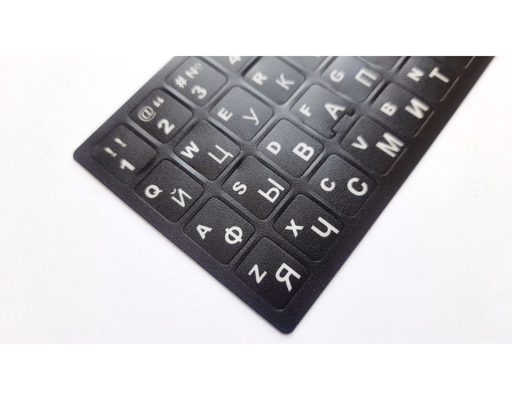 Даний комплект наклейок дозволить "русифікувати" клавіатуру без кирилиці. Або відновити написи символів, якщо вони стерлися з часом. |