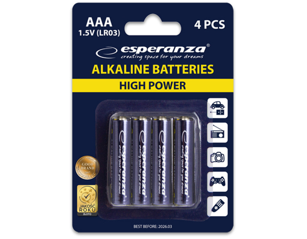| Батарейки Esperanza AAA LR03 Alkaline * 4 (EZB102) поєднують у собі сучасні технології та виняткову якість, задовольняючи потреби як у побуті, так і в офісі. Завдяки лужній електрохімічній системі, ці циліндричні батарейки забезпечують стабільну роботу пристроїв зі стандартним енергоспоживанням. Чотири батарейки в упаковці — це ідеальний вибір для живлення годинників, радіоприймачів, пультів дистанційного керування, а також техніки, яку ми використовуємо щодня як-то ліхтарі чи комп'ютерні миші. Їхня довготривала надійність гарантує зберігання заряду без втрати якості навіть у неексплуатованому стані, що робить їх економічним рішенням. Вибирайте Esperanza AAA LR03 для комфортного використання і справжньої впевненості в енергії ваших пристроїв! |