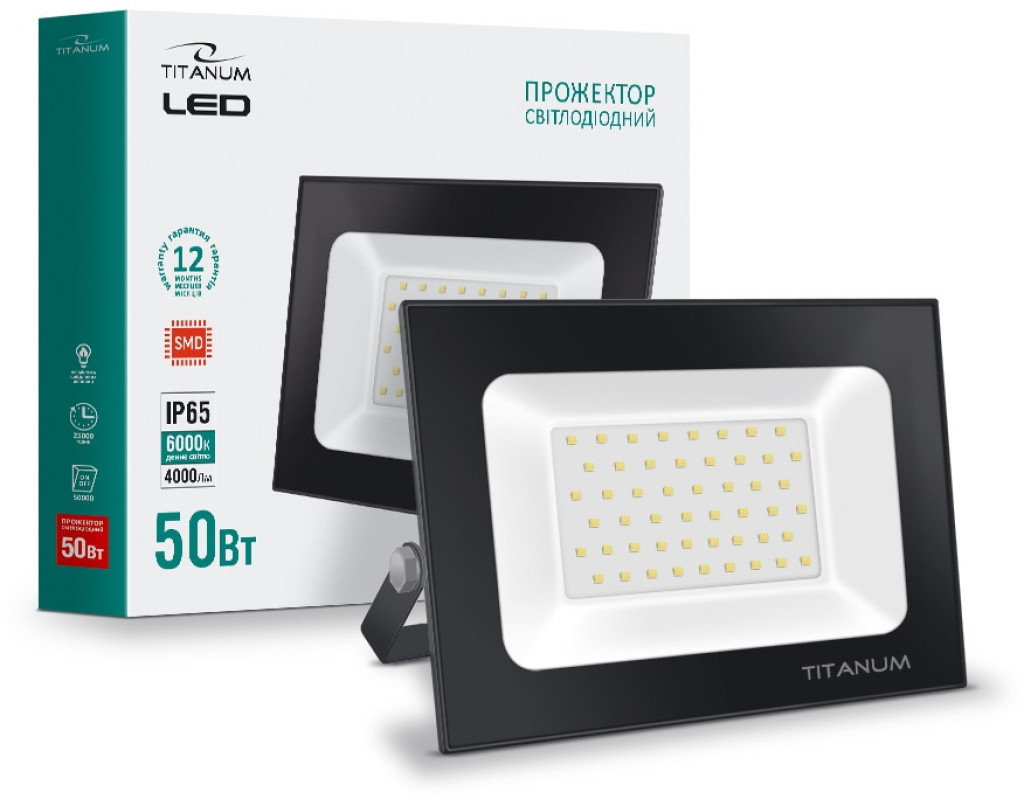 LED прожектор TITANUM 50W 6000K - високотехнологічний джерело світла. Забезпечує рівний світловий потік і максимальну потужність з першої секунди роботи. Призначений для загального і декоративного освітлення архітектурних об'єктів, торгових площ, рекламних щитів, створення світлових ефектів, освітлення відкритих територій приватних садиб і промислових підприємств. Світлодіодний прожектор TITANUM- екологічна і економічна заміна ламп розжарювання і люмінесцентних ламп. Корпус LED прожектора прекрасно протистоїть волозі, дощу, снігопадів і іншим погодних опадів. Клас захисту IP65. Під час роботи прожектора відсутнє мерехтіння, інфрачервоне або ультрафіолетове випромінювання. Колірна температура - 6000К (денне світло). Кут розсіювання світла - 120 °, що дозволяє якісно освітити приміщення. Сила світлового потоку-80лм / В, а сумарний потік прожектора становить 4000Лм. |