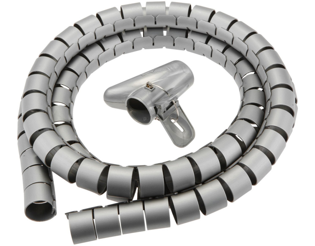 Спіральний органайзер для проводів TOPEX завдовжки 200 см. Допомагає скріпити шнури живлення так, щоб привести їх в порядок і забезпечити безпеку. Допомагає приховати дроти позаду письмового столу або комода. Дроти збираються в пучок за допомогою пластмасової спіралі. Зібрані таким чином дроти займають менше місця і не припадають пилом. Зручний при укладанні.