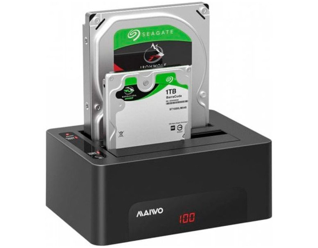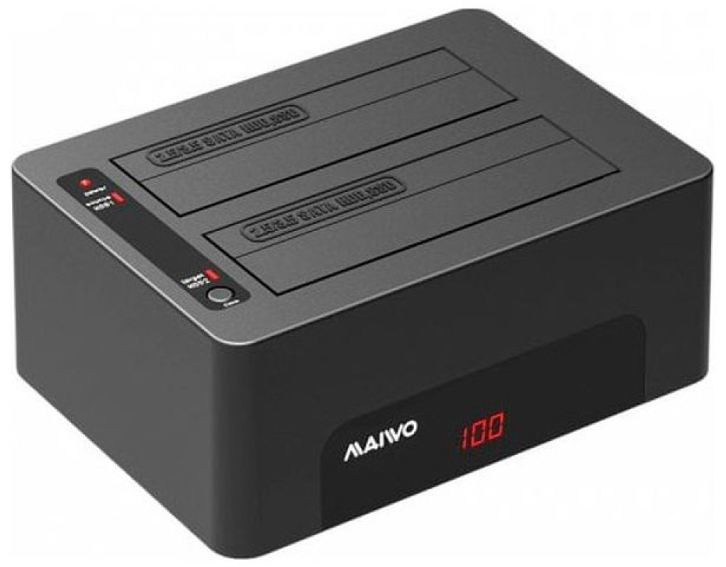 Док-станція Maiwo K3082A з функцією клонування дисків призначена для двох жорстких дисків HDD 2.5"/3.5" SATA, а також для накопичувачів SSD, інтерфейс передавання даних USB 3.0. Док-станція має дуже стильний і практичний корпус, приємний на дотик. - Два відсіки для встановлення жорстких дисків