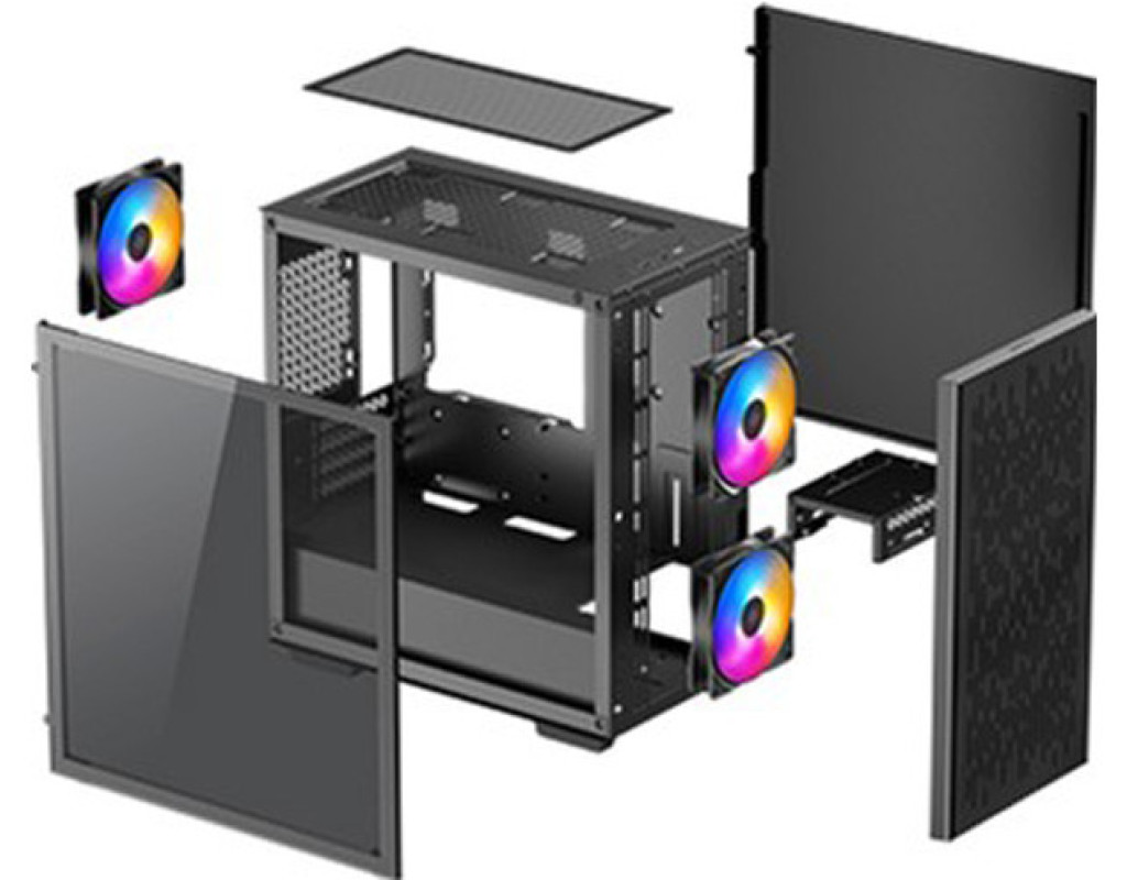 | Корпус Deepcool MATREXX 40 3FS — це ідеальне рішення для геймерів, які очікують від свого обладнання не тільки якість, але й високі технологічні можливості. Завдяки поєднанню міцної конструкції та стильного дизайну, цей корпус яскраво відіб'ється у вашому ігровому просторі та стане його невід'ємною частиною. Цей корпус належить до класу геймерських, що відразу натякає на його спеціалізоване призначення для обробки найвибагливіших завдань гри. Типорозмір Minitower дозволяє вміщувати корпус навіть у обмеженому просторі, не жертвуючи підтримкою всіх потрібних компонентів. Корпус підтримує материнські плати форм-факторів Micro-ATX та Mini-ITX, подаючи гнучкість у виборі компонентів для створення вашого ідеального ПК. MATREXX 40 3FS поставляється без блоку живлення, що дозволяє вам обрати відповідний варіант, однак передбачено нижнє розташування блока живлення, що є стандартом для забезпечення кращої циркуляції тепла. Корпус містить два внутрішніх відсіки для накопичувачів розміром 3.5" і два для накопичувачів 2.5", забезпечуючи достатній простір для зберігання ваших даних. З урахуванням сучасних вимог до охолодження, корпус оснащений трьома вже встановленими вентиляторами розміром 120 мм. Крім цього, передбачені місця для установки додаткових вентиляторів на верхній панелі, що підтримують конфігурації 2x12/14 см. Наявність пилового фільтру забезпечує захист від пилу, гарантуючи стабільну роботу внутрішніх компонентів. Крім того, корпус підтримує рідинне охолодження, що є істотною особливістю для зниження робочої температури процесора та системи в цілому. Однією з привабливих особливостей корпусу є наявність вікна на бічній панелі, яке не лише додає візуальної привабливості, але й дозволяє спостерігати за роботою внутрішніх компонентів. Що важливо для модернізації та зручності користування, знімний кошик для жорстких дисків дозволяє швидко та легко додавати нові накопичувачі або замінювати старі. Корпус також має всі необхідні зовнішні роз'єми, серед яких 1 x USB 2.0, 1 x USB 3.0 та 1 x Audio, забезпечуючи швидкі підключення периферійних пристроїв. Підсвічування кулерів, розташованих на передній і задній панелях, не тільки додає стильного вигляду, але й підкреслює ваш ігровий обладнання в темряві. Вага корпусу становить 5.52 кг, що робить його достатньо легким для зручного переміщення, але водночас надійним у стабільності розташування. Максимальна довжина відеокарти, що встановлюється, складає 320 мм, висота процесорного кулера до 165 мм, а максимальна довжина блоку живлення — 160 мм, що відкриває шлях для використання більшості сучасних апаратних рішень. Загалом, Deepcool MATREXX 40 3FS вражає поєднанням якісних матеріалів, ергономічного дизайну та функціональності, що робить його чудовим вибором для будь-якого геймера, який прагне створити надійний та стильний ПК. |