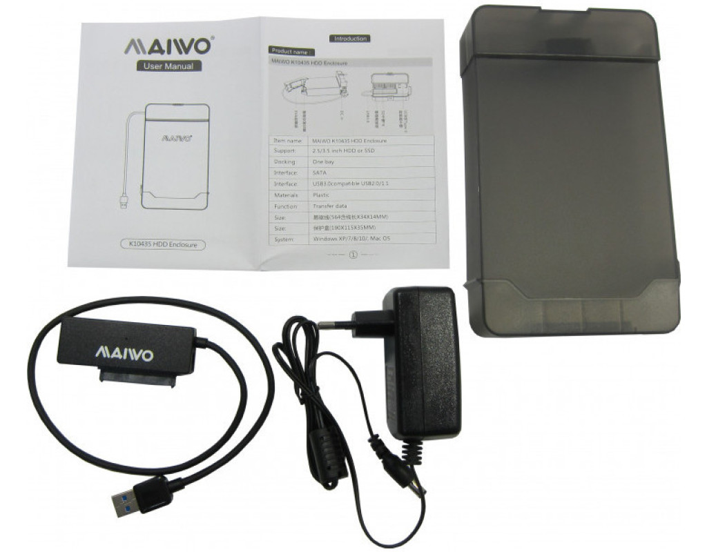 Кишеня зовнішня Maiwo K104A USB 3.0 - SATA III, с блоком питания 12В/2А (K10435)