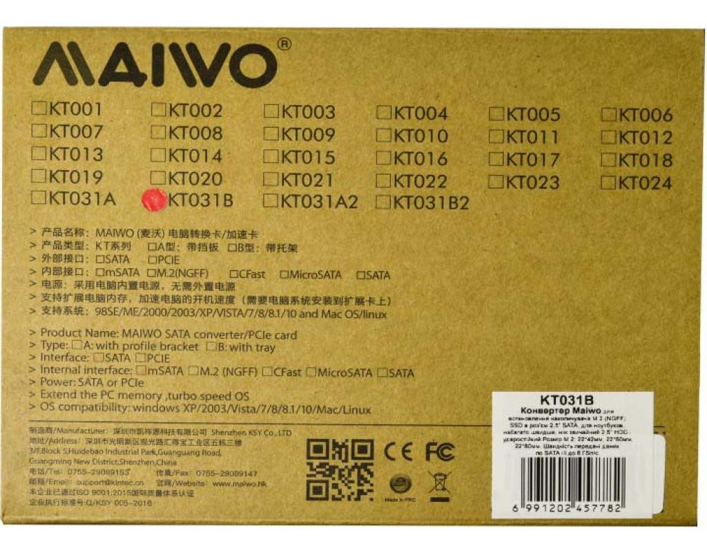 Конвертер Maiwo KT031B призначений для установки M.2 (NGFF) SSD в ноутбук замість 2.5 '' SATA. Таким чином, він конвертує M.2 (NGFF) SSD в стандартний диск 2.5 "SATA III. У накопичувача M.2 SSD швидкість обміну даними набагато вище, ніж у звичайного 2.5" HDD SATA, і, що дуже важливо, - він удароміцний. Тому якщо раптом ваш ноутбук впаде, то його слабке місце - жорсткий диск - залишиться в цілісності й схоронності. Підтримує 3 типа розміру M.2 (NGFF) SDD: 22x42 мм, 22x60 мм, 22x80 мм. Швидкість передачі даних SATA III до 6 Гбіт / с. Накопичувач M.2 SSD не входить в комплект поставки даного контролера, цей M.2 SSD може бути завантажувальним диском. Драйверів не потрібно. Підтримка ОС: Windows, Mac, Linux. Корпус - металевий сріблястий. |