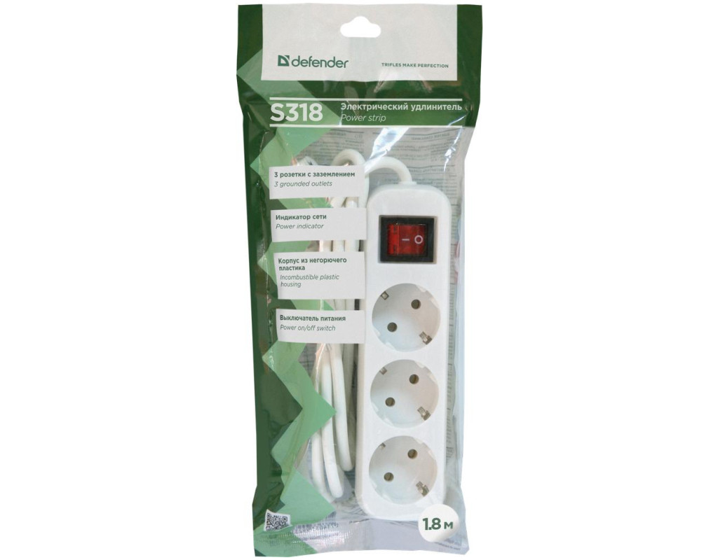 Планування в офісі або квартирі часто може не відповідати нашим потребам. Як підсумок, підключення до мережі великої кількості приладів, розташованих по сусідству, може стати неможливим із-за відсутності необхідної кількості розеток. Купивши даний мережевий фільтр Defender S318 1.8 m, 3 розетки від компанії Defender, ви повністю вирішите дану проблему. Ця модель має на борту три роз'єми EURO-стандарту і має функцію фільтрації вхідної напруги. Таким чином, значно скорочується можливість псування вашої техніки внаслідок стрибків напруги в мережі. Крім того, пристрій виконаний з негорючого пластику та може бути закріплено на стіні. Довжина кабелю складає 1,8 метри.