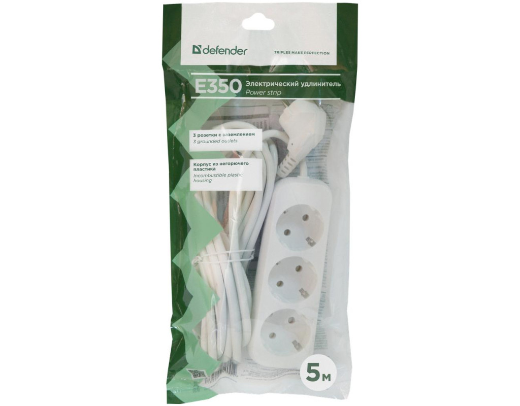 Планування в офісі або квартирі часто може не відповідати нашим потребам. Як підсумок, підключення до мережі великої кількості приладів, розташованих по сусідству, може стати неможливою із-за відсутності необхідної кількості розеток. Купивши даний мережевий фільтр Defender E350 5.0 м, 3 розетки від компанії Defender, ви повністю вирішити дану проблему. Ця модель має на борту три роз'єми EURO-стандарту і має функцію фільтрації вхідного напруги. Таким чином, значно скорочується можливість псування вашої техніки внаслідок стрибків напруги в мережі. Крім того, пристрій виконаний з негорючого пластику та може бути закріплено на стіні. Довжина кабелю становить 5,0 метрів.