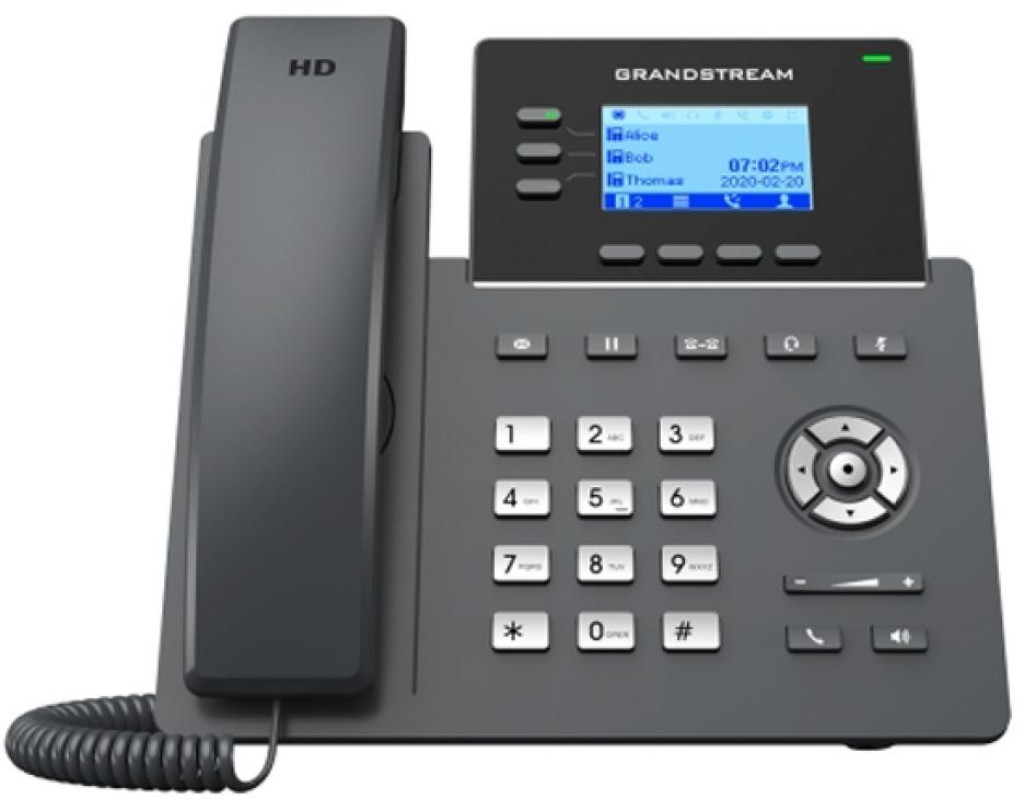 Grandstream GRP2603 є базовою 3-лінійну модель, розроблену з підтримкою автоналаштування для масового розгортання і простого управління. Він відрізняється елегантним дизайном і набором функцій нового покоління, включаючи 5-сторонню голосову конференц-зв'язок для максимальної продуктивності, звук Full HD як на динаміці, так і на трубці, щоб користувачі могли спілкуватися з максимальною чіткістю, підтримку EHS для гарнітур Plantronics, Jabra і Sennheiser, а також багатомовну підтримку. Серія GRP включає функції безпеки операторського класу для забезпечення безпеки на рівні підприємства, в тому числі безпечну завантаження, подвійні образи мікропрограм і зашифроване зберігання даних. Для хмарних обчислень і централізованого управління Grandstream GRP2603 підтримується системою управління пристроями (GDMS) компанії Grandstream, яка надає централізований інтерфейс для конфігурації, ініціалізації, управління і моніторингу розгортання кінцевих точок Grandstream. Створений для задоволення основних потреб рядових співробітників і призначений для простого розгортання на різних підприємствах і у сервіс-провайдерів, Grandstream GRP2603 являє собою простий у використанні і легкий в розгортанні телефонний апарат.