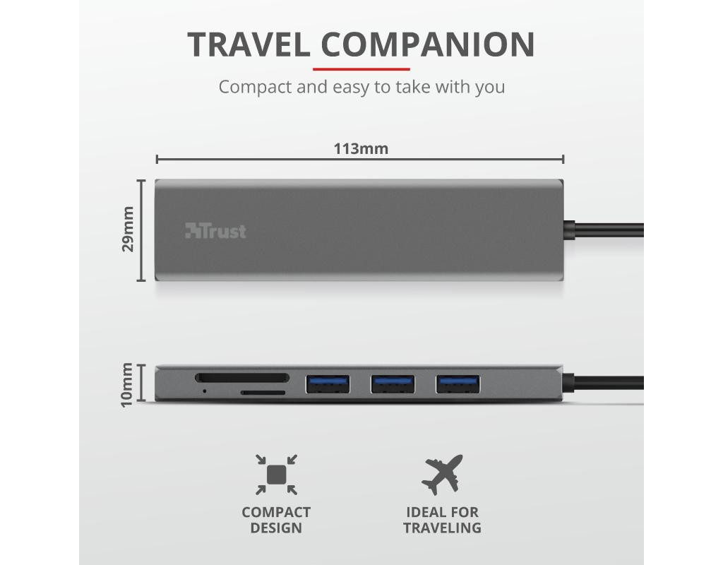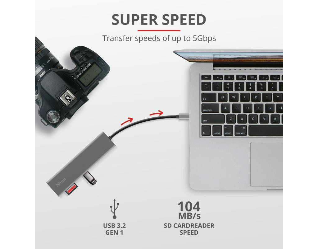 Концентратор Trust HALYX FAST 3USB+CARD READER USB-C ALUMINIUM (24191_TRUST)